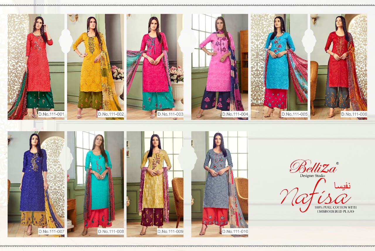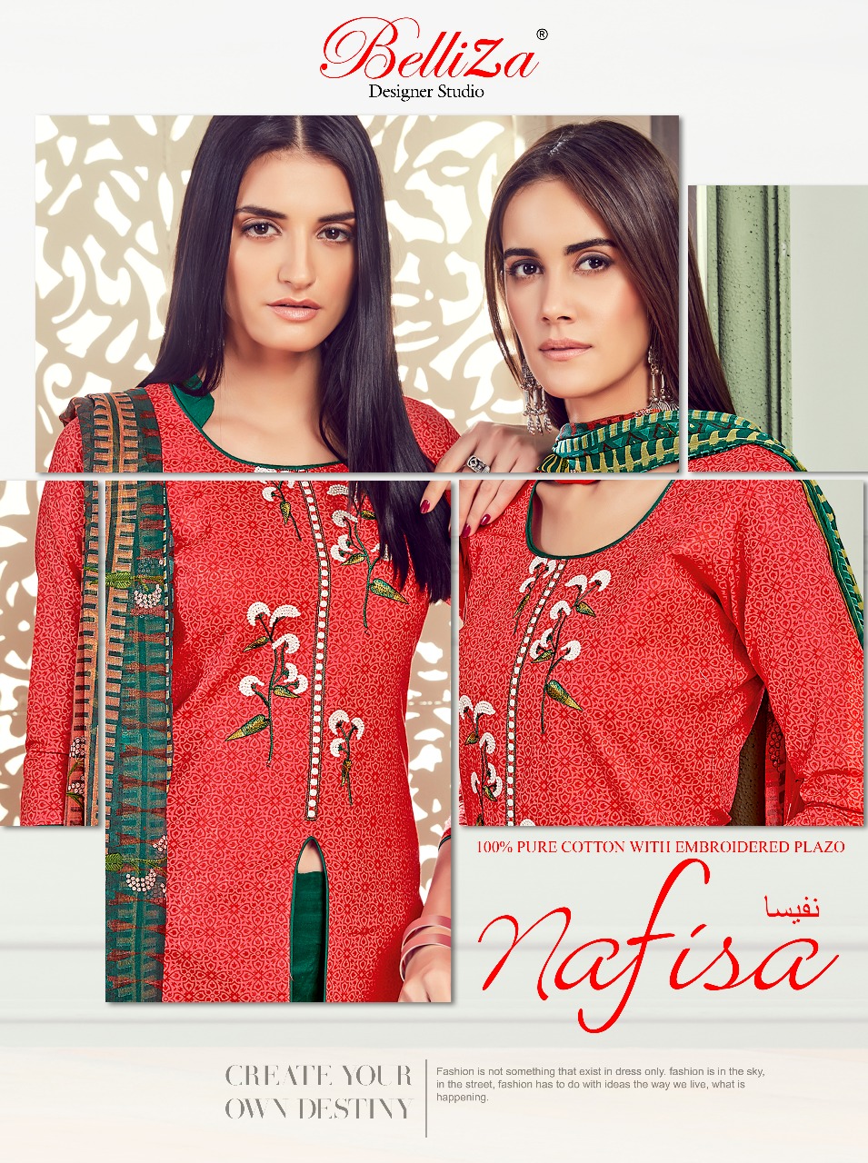 Buy Online Nafisa By Beliza Designer Studio Cotton Printed Embroidered Designer Suits Wholesale Supplier And Dealer Gujarat 10 Pcs of Full Catalogue at Wholesale Price. Looking for Nafisa By Beliza Designer Studio Cotton Printed Embroidered Designer Suits Wholesale Supplier And Dealer Gujarat Full Catalouge at Best Price? Buy Now Nafisa By Beliza Designer Studio Cotton Printed Embroidered Designer Suits Wholesale Supplier And Dealer Gujarat at Wholesale Rate of Rs 6500 with Total 10 Pcs from authroized dealer and supplier of Belliza Designer studio Brand. Cost of Each piece is just only Rs 650 which is very low and affordable price to resale the product in your retail store ,This is Surat based Wholesale Supplier & Dealer of Belliza Designer studio Brand. Click on Brand name to Know more about Belliza Designer studio Brand's products.Call or Whatsapp on 9898838984 for booking or enquiry