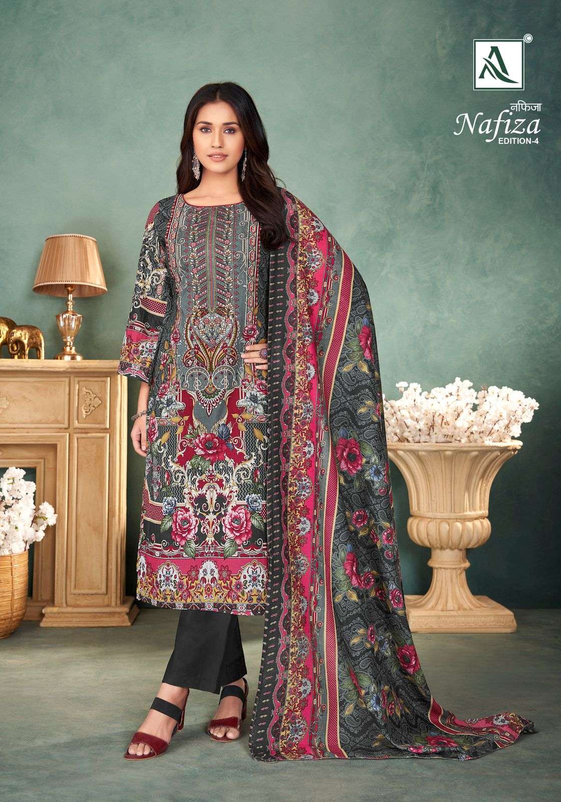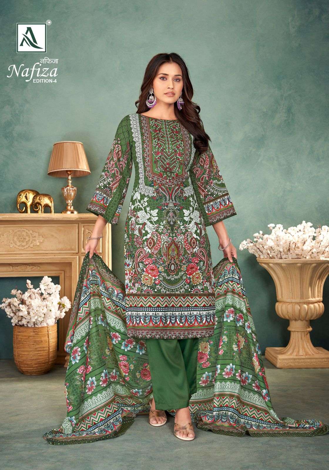 Buy Online NAFIZA 4 by ALOK suit Pure Cambric cotton suit collection manufacturer surat 8 Pcs of Full Catalogue at Wholesale Price. Looking for NAFIZA 4 by ALOK suit Pure Cambric cotton suit collection manufacturer surat Full Catalouge at Best Price? Buy Now NAFIZA 4 by ALOK suit Pure Cambric cotton suit collection manufacturer surat at Wholesale Rate of Rs 4320 with Total 8 Pcs from authroized dealer and supplier of ALOK SUIT Brand. Cost of Each piece is just only Rs 540 which is very low and affordable price to resale the product in your retail store ,This is Surat based Wholesale Supplier & Dealer of ALOK SUIT Brand. Click on Brand name to Know more about ALOK SUIT Brand's products.Call or Whatsapp on 9898838984 for booking or enquiry