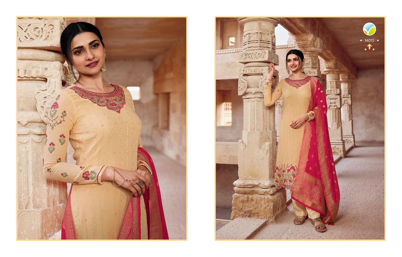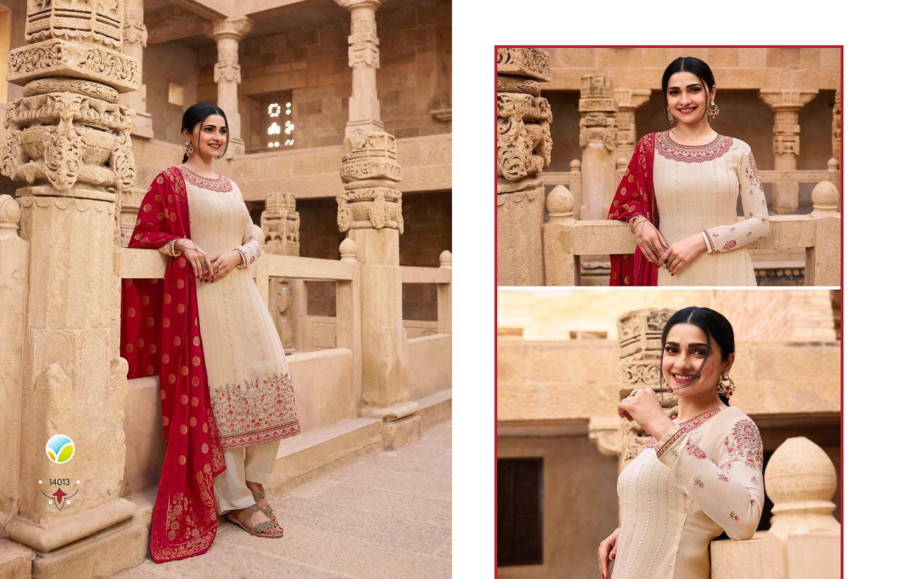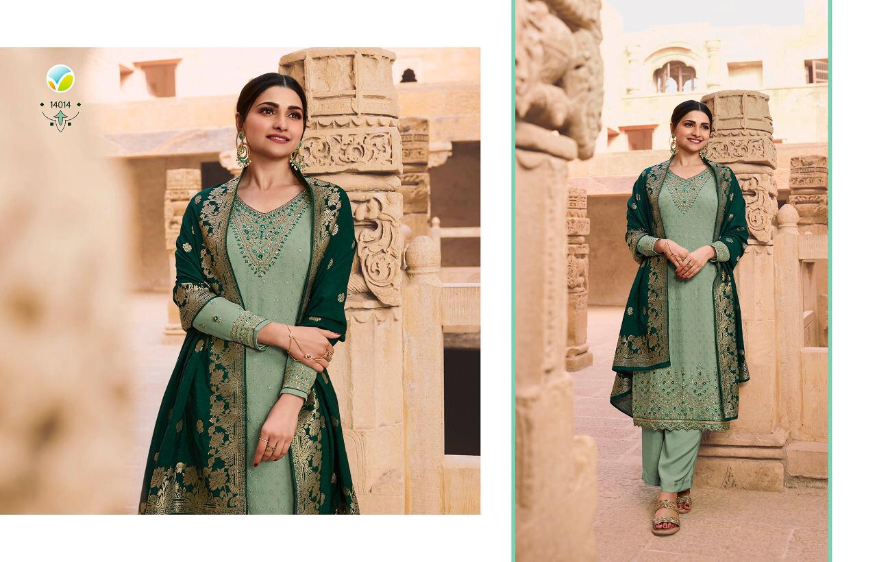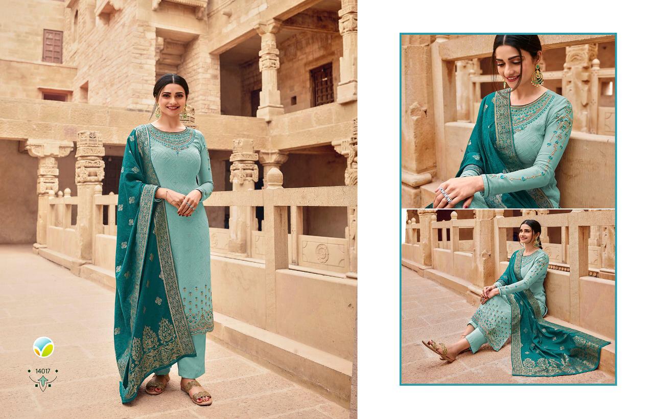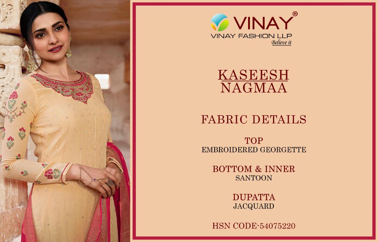 *KASEESH-NAGMAA* By Vinay *FABRIC DETAILS : EMBRIORERED GEORGETTE TOP WITH JAQUARD DUPATTA* *Per PCs PRICE :- 1465/-* Set to set. *HSN CODE : 54075220* *NOTE :- GST WILL CHARGE AS APPLICABLE* Delivery 5-6 days |
