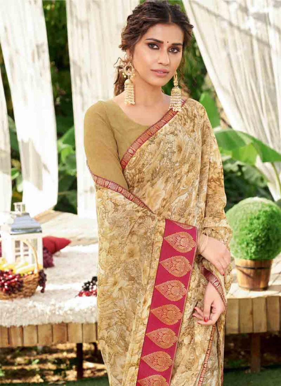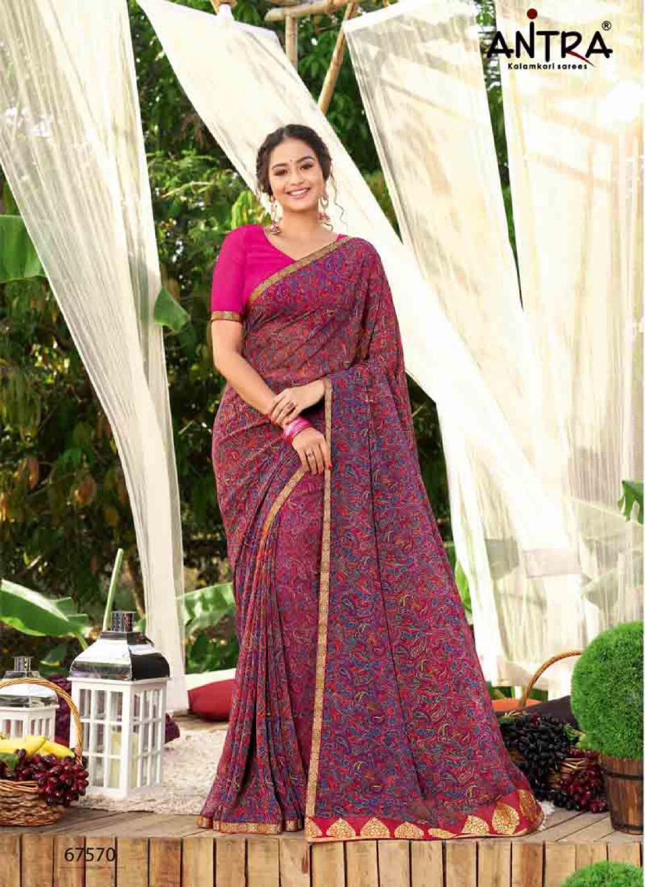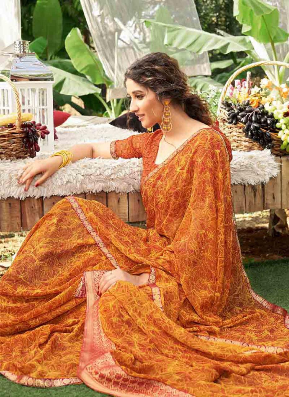 NAINA by Antra Lifestyle RATE :- 724 per Pcs . Set to set. GST 5 Percent Extra. Delivery from today FABRICS :- FANCY GEORGETTE PRINTED SAREE WITH PRINT LACE BORDER |
