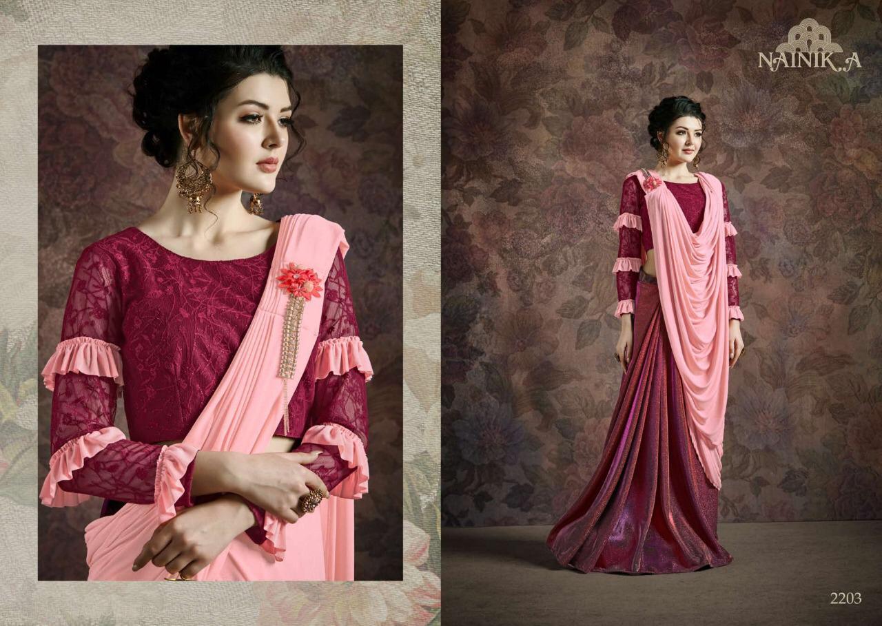 Nainika Vol 2 Series 2201 To 2208 One Minute Designer Party Wear Sarees Wholesale Supplier Gujarat