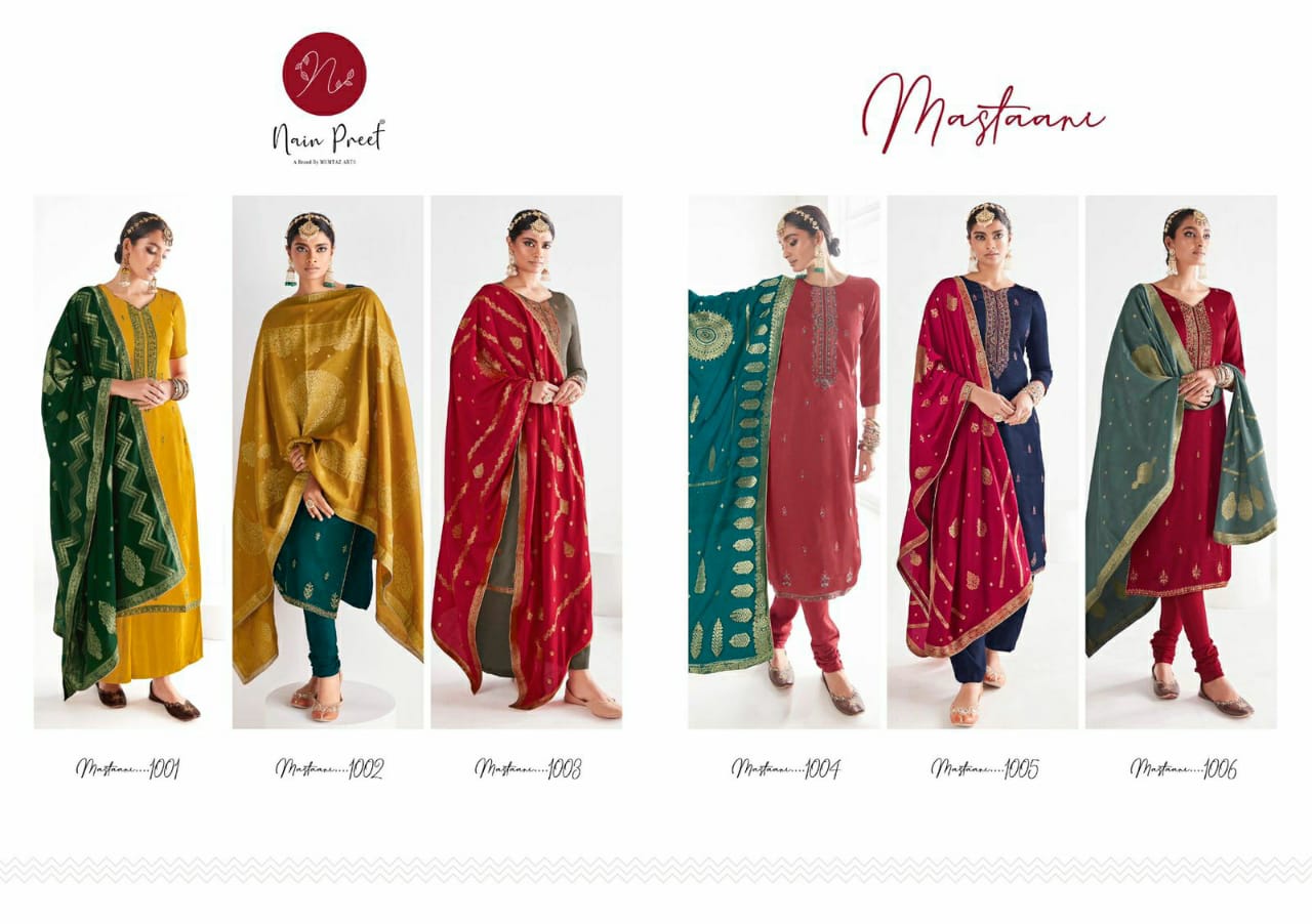 Buy Online Nainpreet Mastani By Mumtaz Arts Premium Edition 6 Pcs of Full Catalogue at Wholesale Price. Looking for Nainpreet Mastani By Mumtaz Arts Premium Edition Full Catalouge at Best Price? Buy Now Nainpreet Mastani By Mumtaz Arts Premium Edition at Wholesale Rate of Rs 9126 with Total 6 Pcs from authroized dealer and supplier of MUMTAZ ARTS Brand. Cost of Each piece is just only Rs 1521 which is very low and affordable price to resale the product in your retail store ,This is Surat based Wholesale Supplier & Dealer of MUMTAZ ARTS Brand. Click on Brand name to Know more about MUMTAZ ARTS Brand's products.Call or Whatsapp on 9898838984 for booking or enquiry