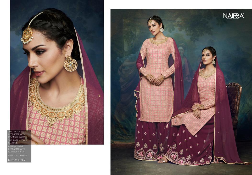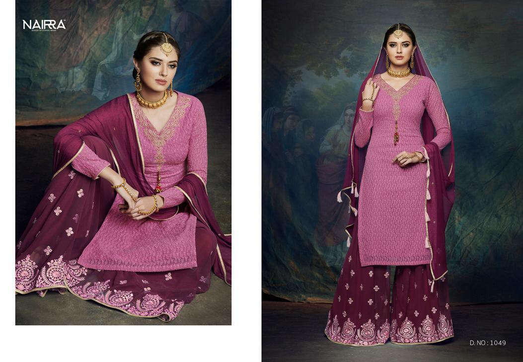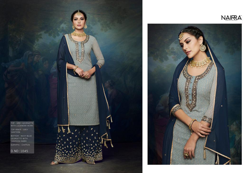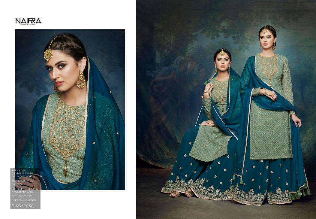 Nairra Blitz By Nakkashi Nairra Series 1045 To 1050 Chiffon Designer Party Wear Suits Wholesale Supplier Gujarat