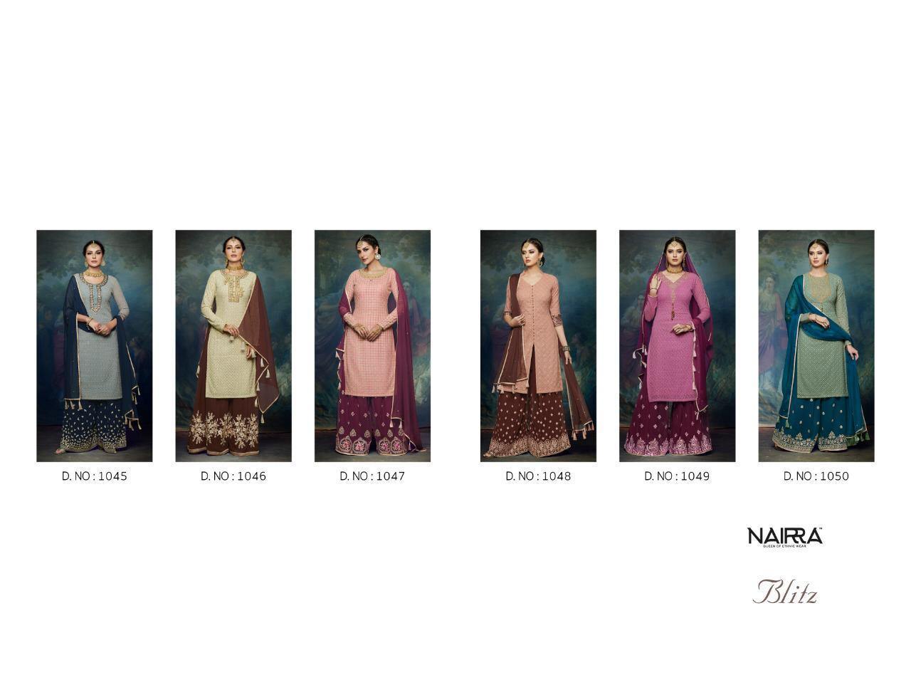 Nairra blitz by nakkashi nairra series 1045 to 1050 chiffon designer party wear suits wholesale supplier Gujarat |