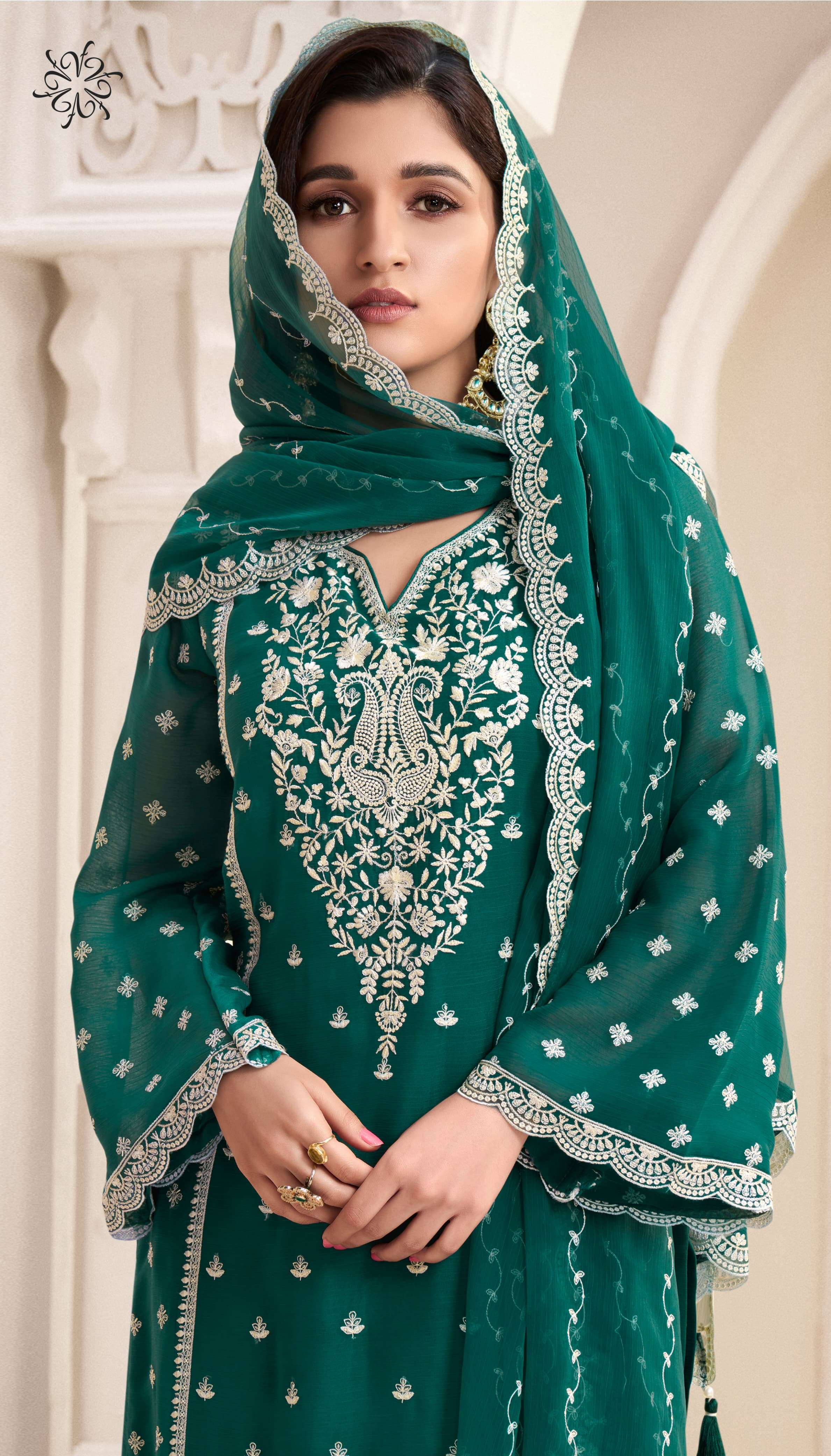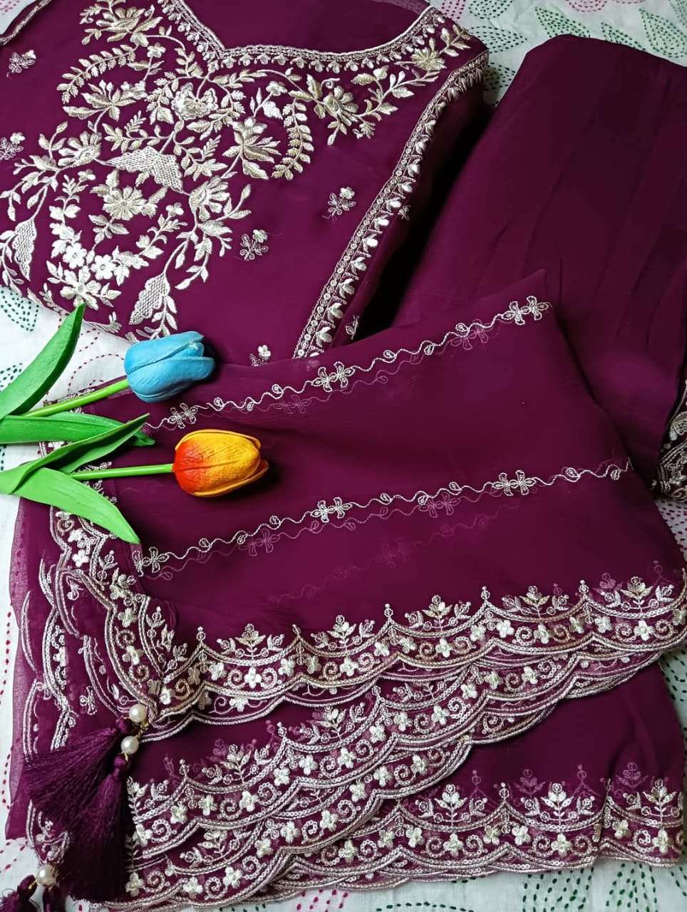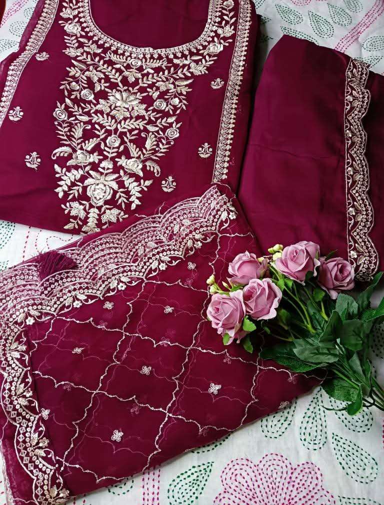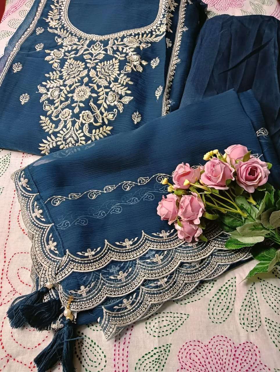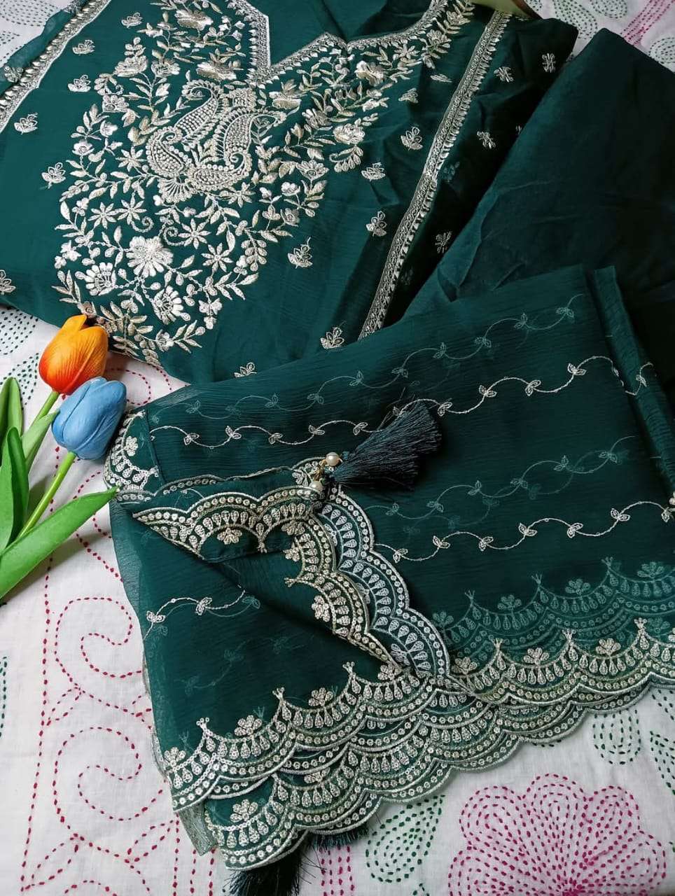 *DRESS MATARIALS* * *FABRIC DETAILS :-* * *TOP : THREAD EMBROIDERED SILK CHIFFON* * *BOTTOM : EMBROIDERED SANTOON* * *DUPATTA : EMBROIDERED SILK CHIFFON*