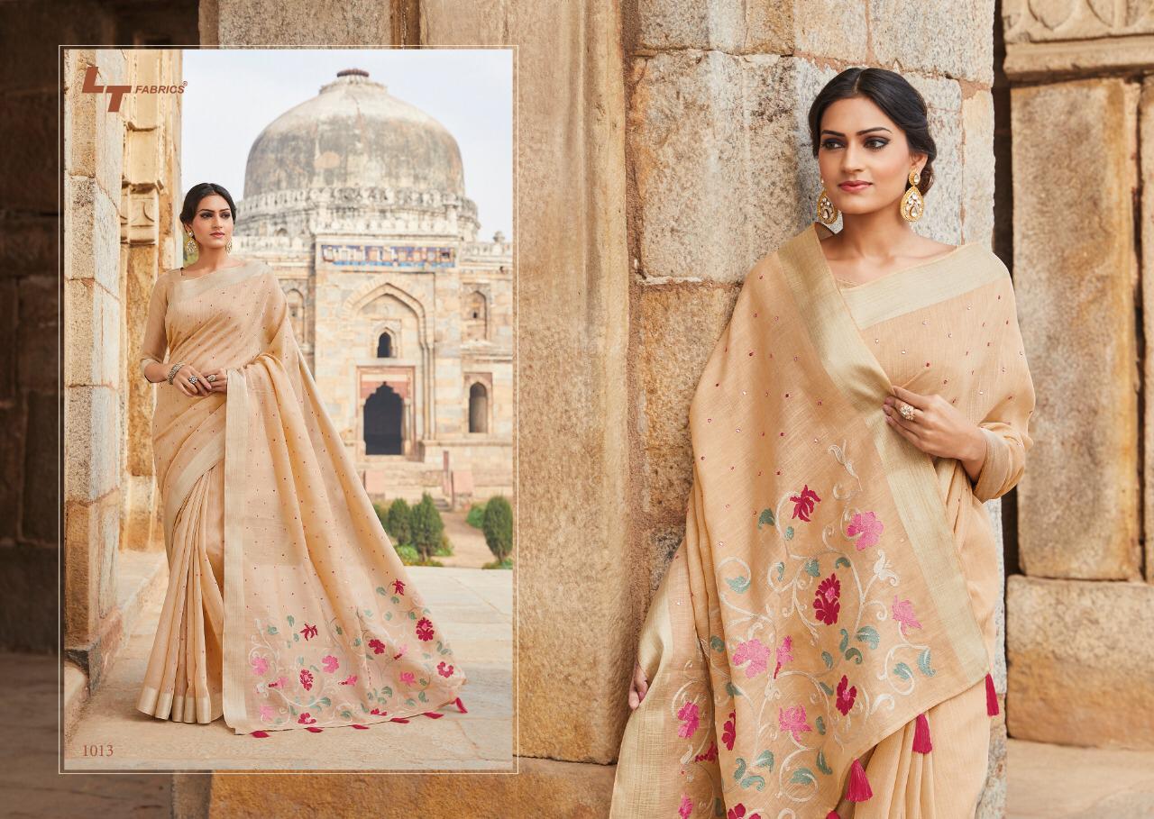 Naisha By Lt Fabrics 1010 Series Designer Linen Silk With Mirror Work Saree Collection Wholesaler Surat