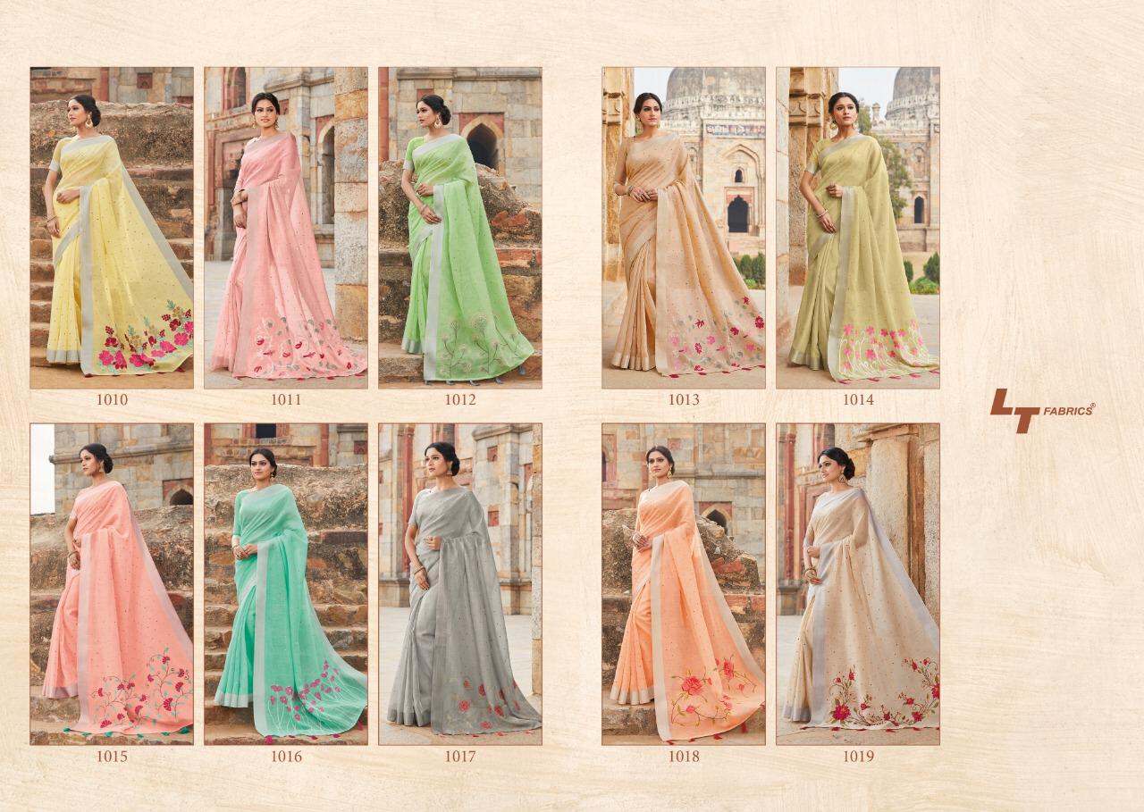 Buy Online Naisha By Lt Fabrics 1010 Series Designer Linen Silk With Mirror Work Saree Collection Wholesaler Surat 10 Pcs of Full Catalogue at Wholesale Price. Looking for Naisha By Lt Fabrics 1010 Series Designer Linen Silk With Mirror Work Saree Collection Wholesaler Surat Full Catalouge at Best Price? Buy Now Naisha By Lt Fabrics 1010 Series Designer Linen Silk With Mirror Work Saree Collection Wholesaler Surat at Wholesale Rate of Rs 11550 with Total 10 Pcs from authroized dealer and supplier of LT FABRICS Brand. Cost of Each piece is just only Rs 1155 which is very low and affordable price to resale the product in your retail store ,This is Surat based Wholesale Supplier & Dealer of LT FABRICS Brand. Click on Brand name to Know more about LT FABRICS Brand's products.Call or Whatsapp on 9898838984 for booking or enquiry