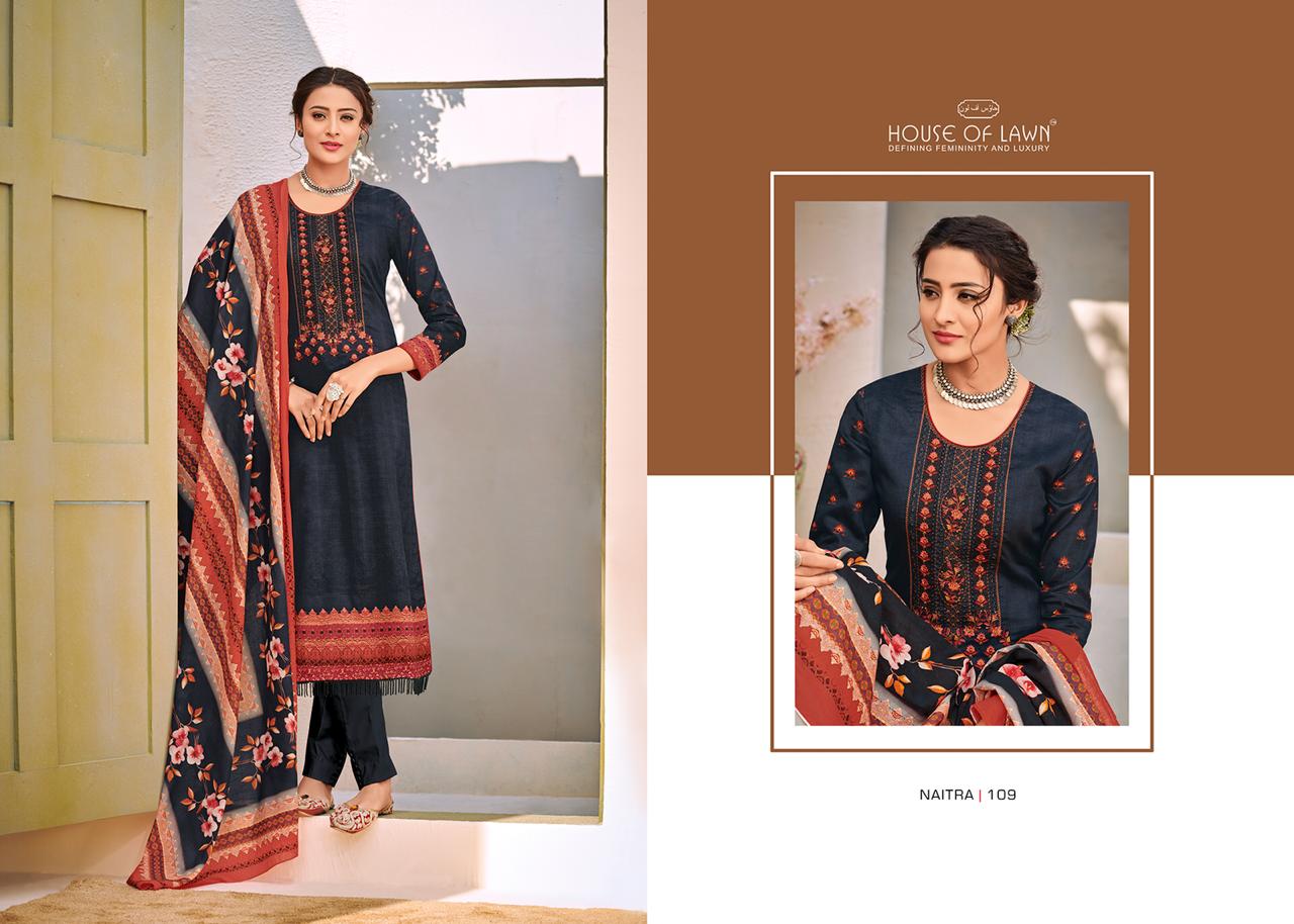 Buy Online Naitra By House Of Lawn 101 Series Fancy Jam Satin Printed Salwar Kameez Catlog Wholesale Dealer And Supplier Surat 10 Pcs of Full Catalogue at Wholesale Price. Looking for Naitra By House Of Lawn 101 Series Fancy Jam Satin Printed Salwar Kameez Catlog Wholesale Dealer And Supplier Surat Full Catalouge at Best Price? Buy Now Naitra By House Of Lawn 101 Series Fancy Jam Satin Printed Salwar Kameez Catlog Wholesale Dealer And Supplier Surat at Wholesale Rate of Rs 6750 with Total 10 Pcs from authroized dealer and supplier of HOUSE OF LAWN Brand. Cost of Each piece is just only Rs 675 which is very low and affordable price to resale the product in your retail store ,This is Surat based Wholesale Supplier & Dealer of HOUSE OF LAWN Brand. Click on Brand name to Know more about HOUSE OF LAWN Brand's products.Call or Whatsapp on 9898838984 for booking or enquiry