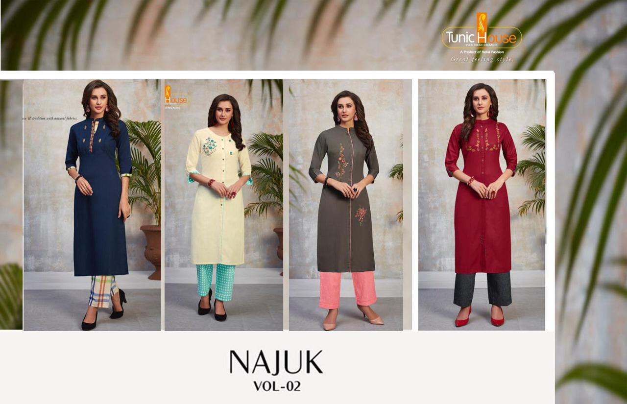 Buy Online Najuk Vol 2 By Tunic House Manufacturer And Dealer From Surat 4 Pcs of Full Catalogue at Wholesale Price. Looking for Najuk Vol 2 By Tunic House Manufacturer And Dealer From Surat Full Catalouge at Best Price? Buy Now Najuk Vol 2 By Tunic House Manufacturer And Dealer From Surat at Wholesale Rate of Rs 3196 with Total 4 Pcs from authroized dealer and supplier of TUNIC HOUSE Brand. Cost of Each piece is just only Rs 799 which is very low and affordable price to resale the product in your retail store ,This is Surat based Wholesale Supplier & Dealer of TUNIC HOUSE Brand. Click on Brand name to Know more about TUNIC HOUSE Brand's products.Call or Whatsapp on 9898838984 for booking or enquiry