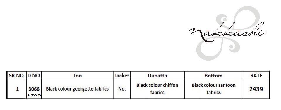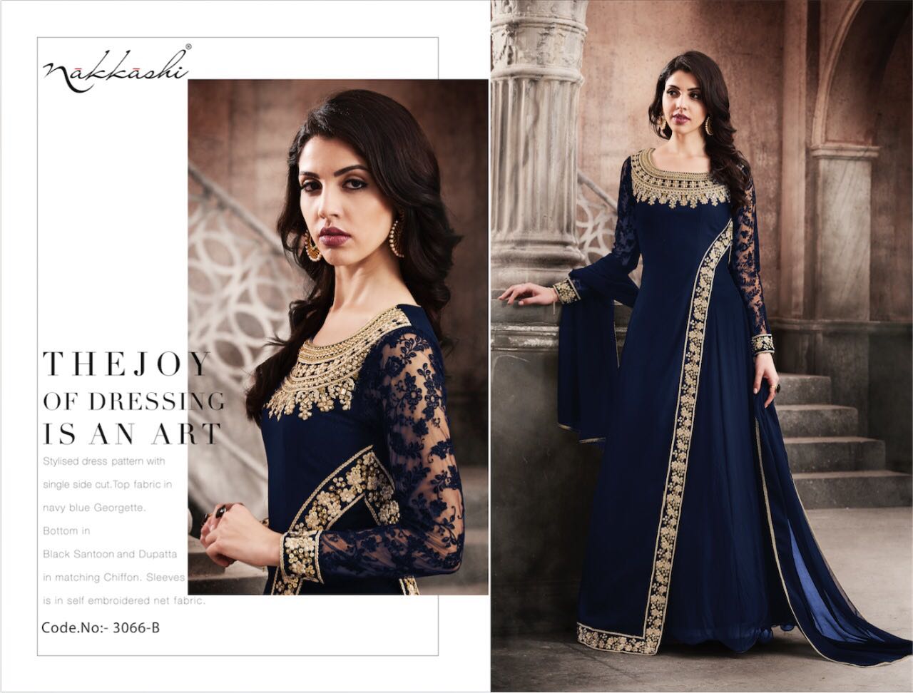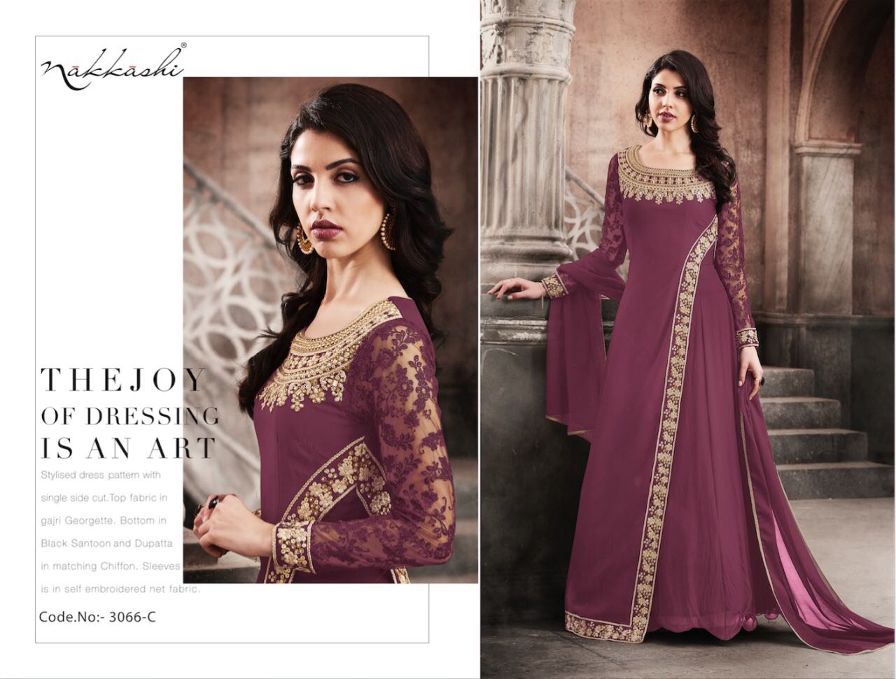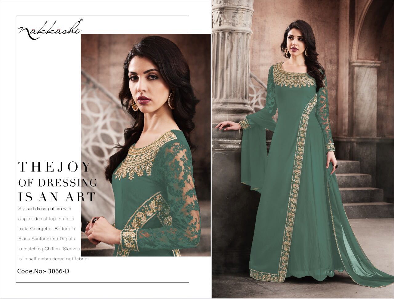 Buy Online Nakkashi 3066 Colours Party Wear Gown Suit Single Pcs 4 Pcs of Full Catalogue at Wholesale Price. Looking for Nakkashi 3066 Colours Party Wear Gown Suit Single Pcs Full Catalouge at Best Price? Buy Now Nakkashi 3066 Colours Party Wear Gown Suit Single Pcs at Wholesale Rate of Rs 9756 with Total 4 Pcs from authroized dealer and supplier of NAKKASHI Brand. Cost of Each piece is just only Rs 2439 which is very low and affordable price to resale the product in your retail store ,This is Surat based Wholesale Supplier & Dealer of NAKKASHI Brand. Click on Brand name to Know more about NAKKASHI Brand's products.Call or Whatsapp on 9898838984 for booking or enquiry