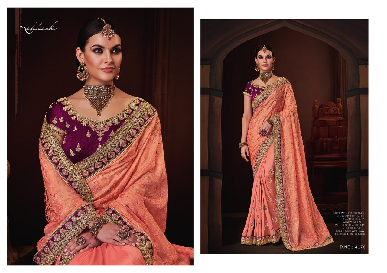 Buy Online Nakkashi Katha Series 4168 To 4179 Designer Party Wear Sarees Wholesale Supplier And Dealer Gujarat 0 Pcs of Full Catalogue at Wholesale Price. Looking for Nakkashi Katha Series 4168 To 4179 Designer Party Wear Sarees Wholesale Supplier And Dealer Gujarat Full Catalouge at Best Price? Buy Now Nakkashi Katha Series 4168 To 4179 Designer Party Wear Sarees Wholesale Supplier And Dealer Gujarat at Wholesale Rate of Rs 0 with Total 0 Pcs from authroized dealer and supplier of NAKKASHI Brand. Cost of Each piece is just only Rs 0 which is very low and affordable price to resale the product in your retail store ,This is Surat based Wholesale Supplier & Dealer of NAKKASHI Brand. Click on Brand name to Know more about NAKKASHI Brand's products.Call or Whatsapp on 9898838984 for booking or enquiry