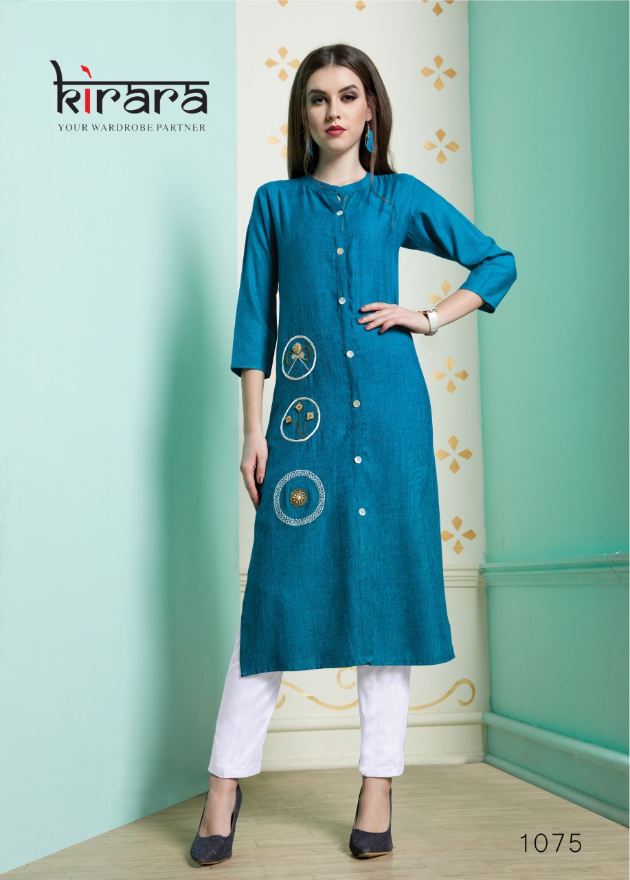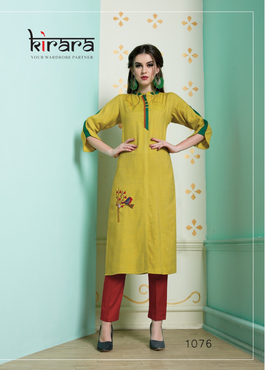 Buy Online Namo By Kirara Kurties 1075 Series Fancy Cotton Kurti Collection Wholesaler Surat 8 Pcs of Full Catalogue at Wholesale Price. Looking for Namo By Kirara Kurties 1075 Series Fancy Cotton Kurti Collection Wholesaler Surat Full Catalouge at Best Price? Buy Now Namo By Kirara Kurties 1075 Series Fancy Cotton Kurti Collection Wholesaler Surat at Wholesale Rate of Rs 3400 with Total 8 Pcs from authroized dealer and supplier of Kirara Brand. Cost of Each piece is just only Rs 425 which is very low and affordable price to resale the product in your retail store ,This is Surat based Wholesale Supplier & Dealer of Kirara Brand. Click on Brand name to Know more about Kirara Brand's products.Call or Whatsapp on 9898838984 for booking or enquiry