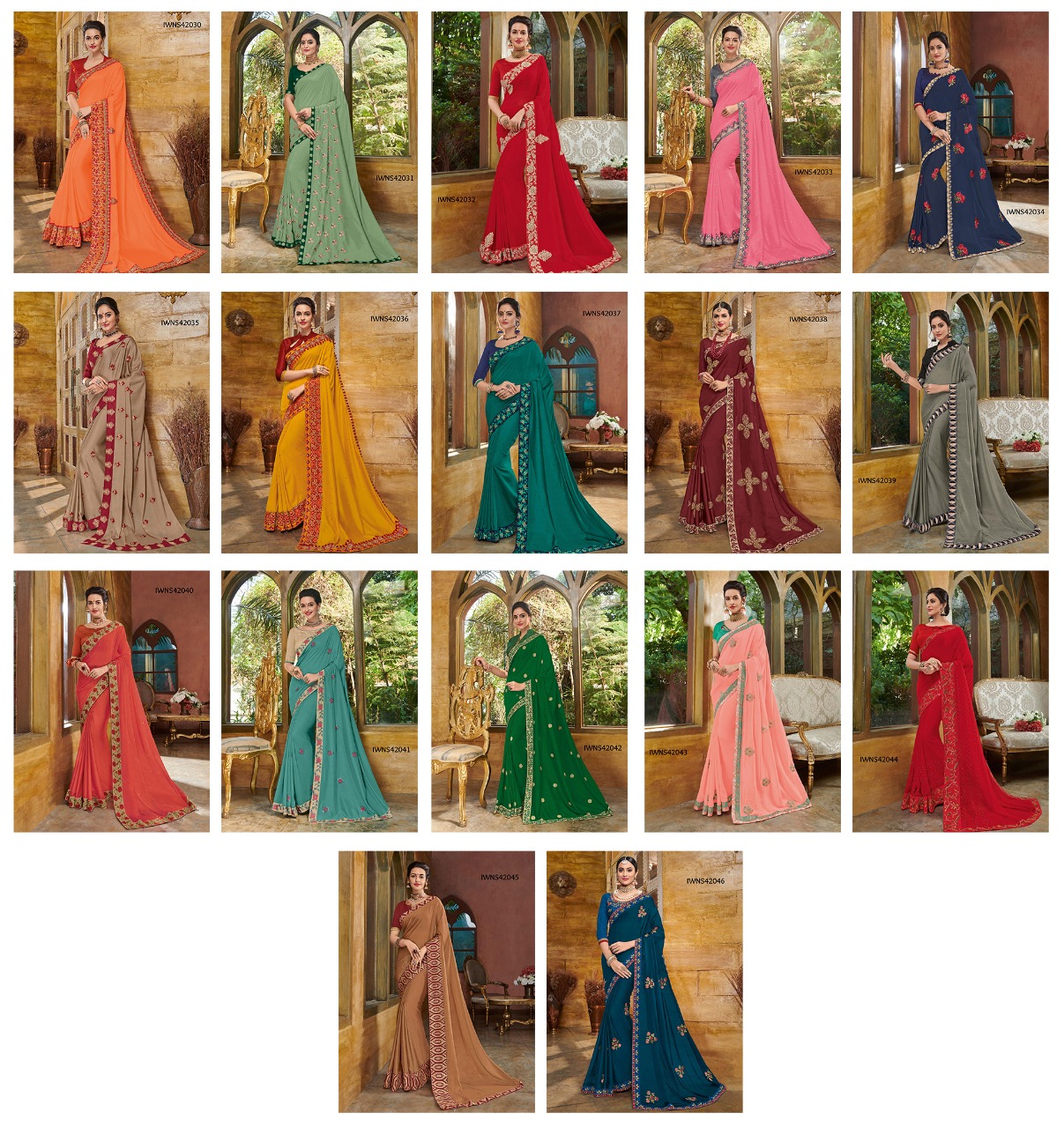 Buy Online Namste Vol 3 Fancy Two Tone Bright Georgette Party Wear Saree Collection Wholesaler Surat 17 Pcs of Full Catalogue at Wholesale Price. Looking for Namste Vol 3 Fancy Two Tone Bright Georgette Party Wear Saree Collection Wholesaler Surat Full Catalouge at Best Price? Buy Now Namste Vol 3 Fancy Two Tone Bright Georgette Party Wear Saree Collection Wholesaler Surat at Wholesale Rate of Rs 19125 with Total 17 Pcs from authroized dealer and supplier of Brand. Cost of Each piece is just only Rs 1125 which is very low and affordable price to resale the product in your retail store ,This is Surat based Wholesale Supplier & Dealer of Brand. Click on Brand name to Know more about Brand's products.Call or Whatsapp on 9898838984 for booking or enquiry