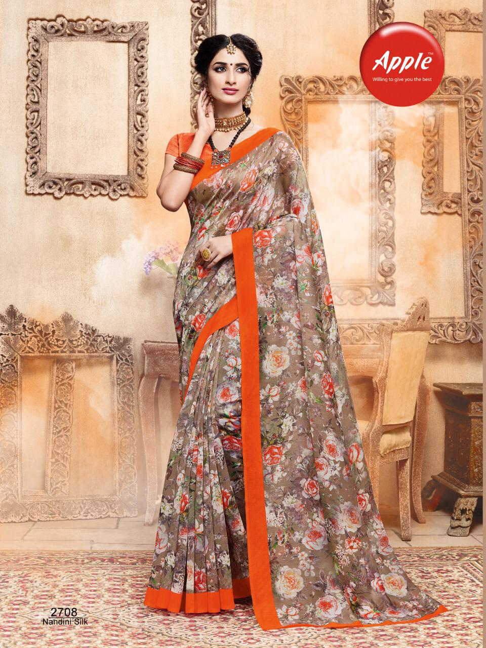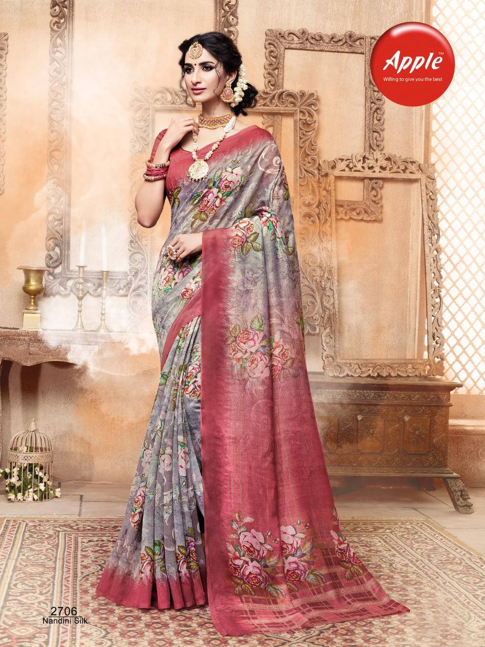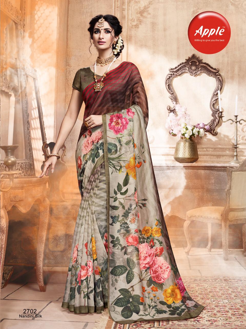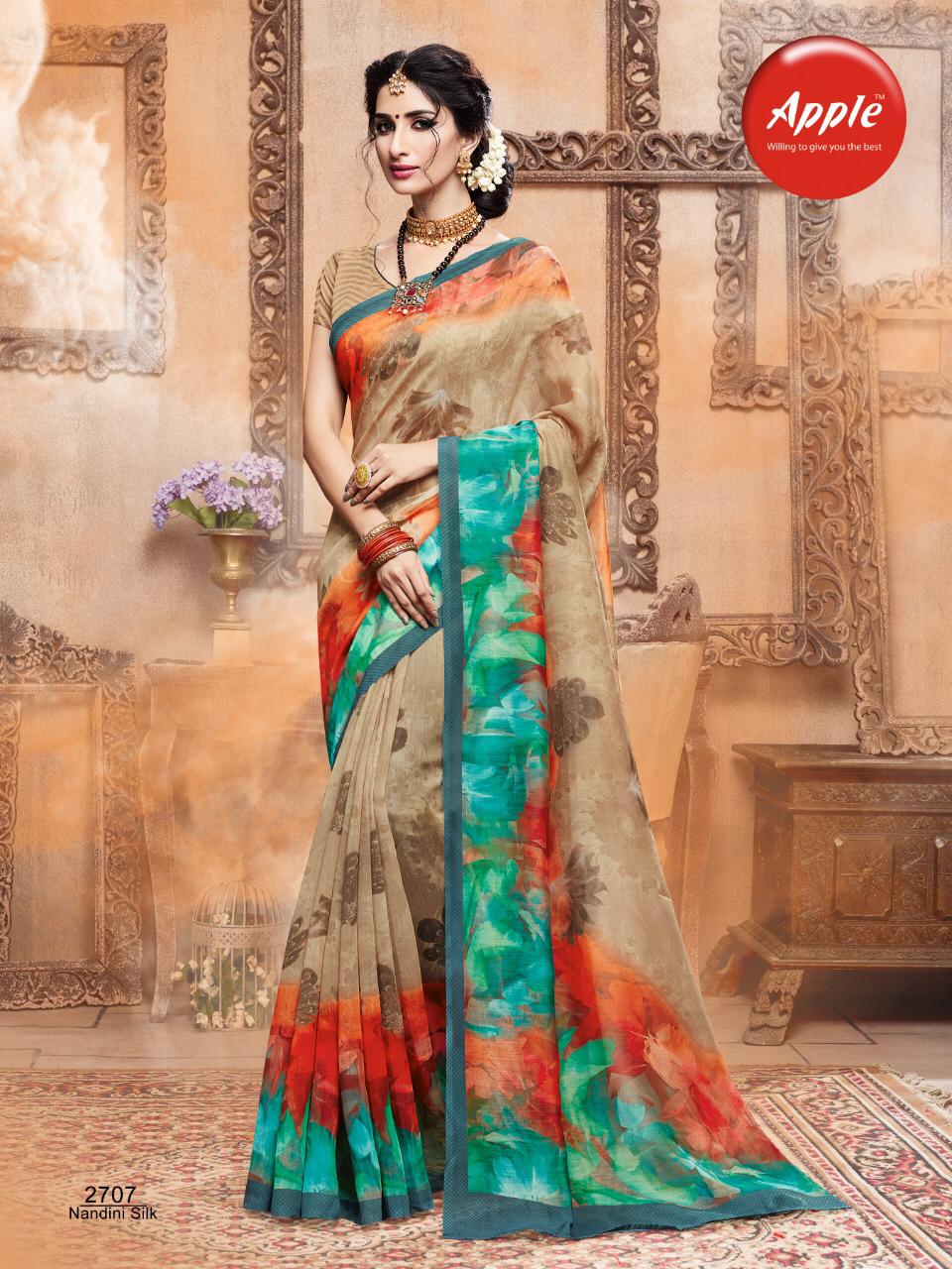 Buy Online Nandini Silk Vol 1 By Apple Silk Printed Sarees Wholesale Supplier Gujarat 10 Pcs of Full Catalogue at Wholesale Price. Looking for Nandini Silk Vol 1 By Apple Silk Printed Sarees Wholesale Supplier Gujarat Full Catalouge at Best Price? Buy Now Nandini Silk Vol 1 By Apple Silk Printed Sarees Wholesale Supplier Gujarat at Wholesale Rate of Rs 6950 with Total 10 Pcs from authroized dealer and supplier of APPLE Brand. Cost of Each piece is just only Rs 695 which is very low and affordable price to resale the product in your retail store ,This is Surat based Wholesale Supplier & Dealer of APPLE Brand. Click on Brand name to Know more about APPLE Brand's products.Call or Whatsapp on 9898838984 for booking or enquiry