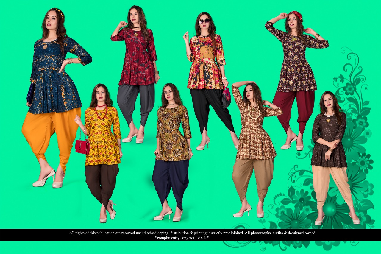 Buy Online Nargish By Shree M Creation Reyon Top With Dhoti Set Collection Wholesale Supplier Surat 8 Pcs of Full Catalogue at Wholesale Price. Looking for Nargish By Shree M Creation Reyon Top With Dhoti Set Collection Wholesale Supplier Surat Full Catalouge at Best Price? Buy Now Nargish By Shree M Creation Reyon Top With Dhoti Set Collection Wholesale Supplier Surat at Wholesale Rate of Rs 4960 with Total 8 Pcs from authroized dealer and supplier of Brand. Cost of Each piece is just only Rs 620 which is very low and affordable price to resale the product in your retail store ,This is Surat based Wholesale Supplier & Dealer of Brand. Click on Brand name to Know more about Brand's products.Call or Whatsapp on 9898838984 for booking or enquiry