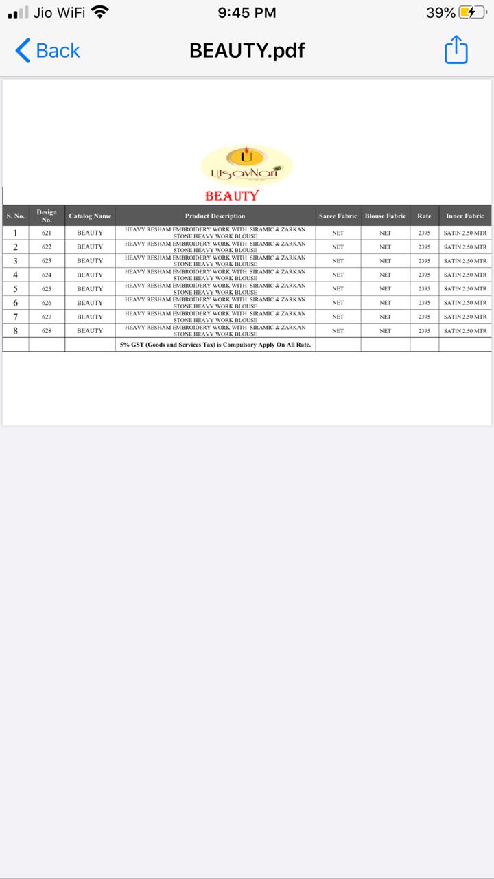 Brand - Naree. Type - saree. Catlog name - BEAUTY . Series - 621 to 628. Set & loose & Singel . Single extra 100 GST 5 Percent Extra. Delivery from today |