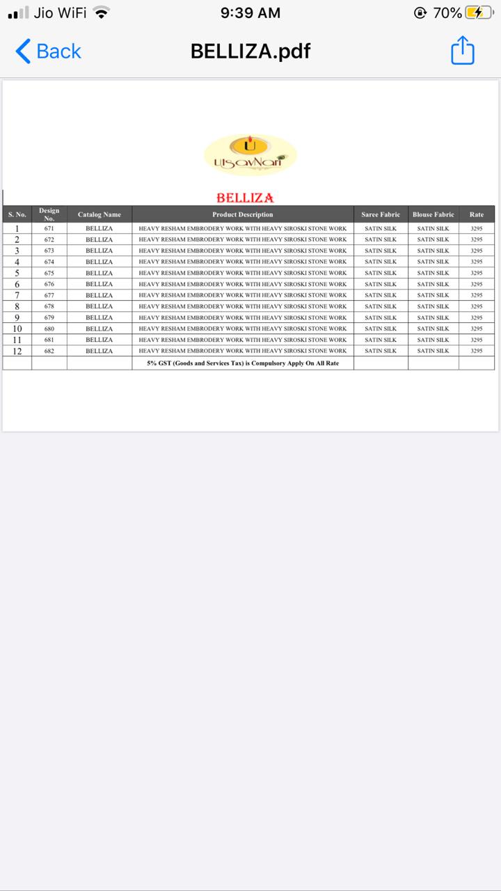 Brand - Nari Fashion . Catlog name - BELLIZA. Series -671 to 682. Set & loose & Singel . Single extra 100 GST 5 Percent Extra Delivery from today |