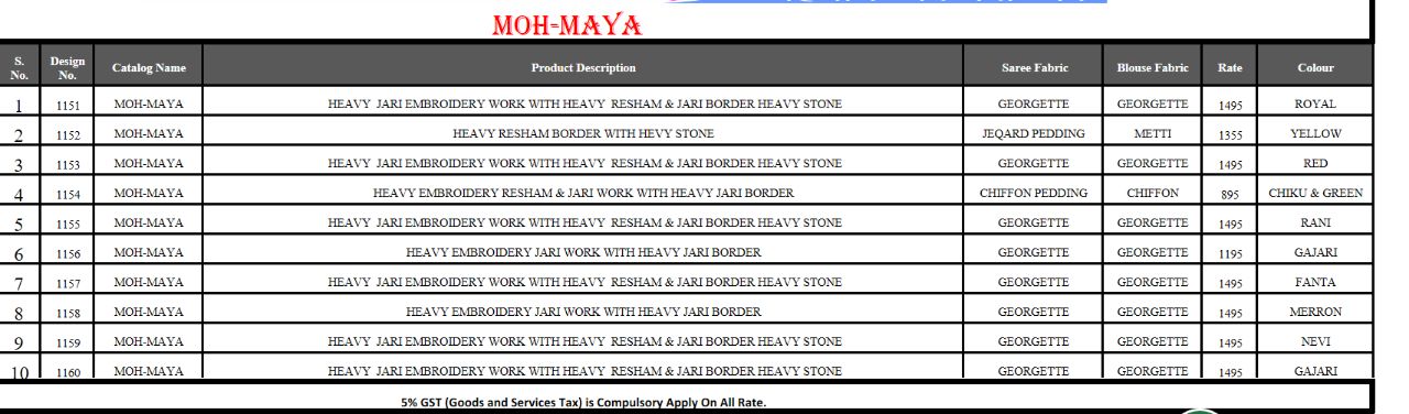 Buy Online Nari Mohmaya 1151 To 1160 Series Party Wear Sarees Dealer 10 Pcs of Full Catalogue at Wholesale Price. Looking for Nari Mohmaya 1151 To 1160 Series Party Wear Sarees Dealer Full Catalouge at Best Price? Buy Now Nari Mohmaya 1151 To 1160 Series Party Wear Sarees Dealer at Wholesale Rate of Rs 13910 with Total 10 Pcs from authroized dealer and supplier of Nari Fashion Brand. Cost of Each piece is just only Rs 1391 which is very low and affordable price to resale the product in your retail store ,This is Surat based Wholesale Supplier & Dealer of Nari Fashion Brand. Click on Brand name to Know more about Nari Fashion Brand's products.Call or Whatsapp on 9898838984 for booking or enquiry