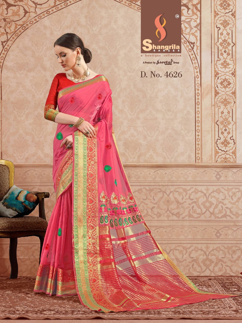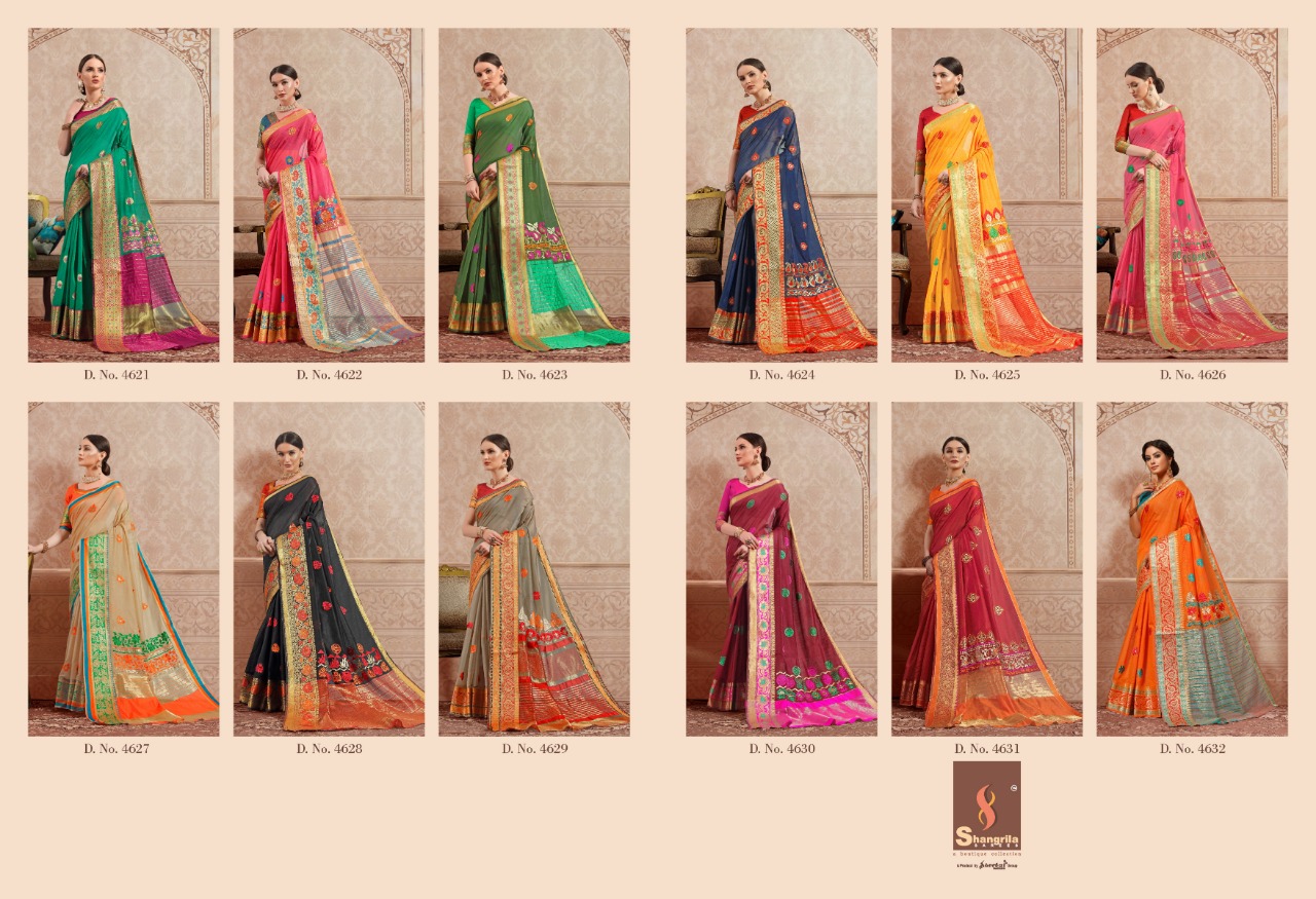 Buy Online Narmada Cotton By Shangrila Series 4621 To 4632 Weaving Silk Designer Occasion Wear Sarees Wholesale Supplier Surat 12 Pcs of Full Catalogue at Wholesale Price. Looking for Narmada Cotton By Shangrila Series 4621 To 4632 Weaving Silk Designer Occasion Wear Sarees Wholesale Supplier Surat Full Catalouge at Best Price? Buy Now Narmada Cotton By Shangrila Series 4621 To 4632 Weaving Silk Designer Occasion Wear Sarees Wholesale Supplier Surat at Wholesale Rate of Rs 8220 with Total 12 Pcs from authroized dealer and supplier of SHANGRILA Brand. Cost of Each piece is just only Rs 685 which is very low and affordable price to resale the product in your retail store ,This is Surat based Wholesale Supplier & Dealer of SHANGRILA Brand. Click on Brand name to Know more about SHANGRILA Brand's products.Call or Whatsapp on 9898838984 for booking or enquiry