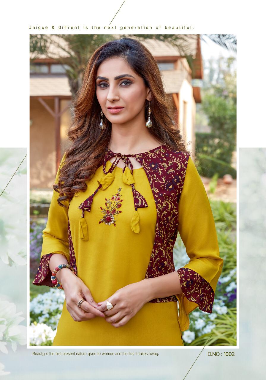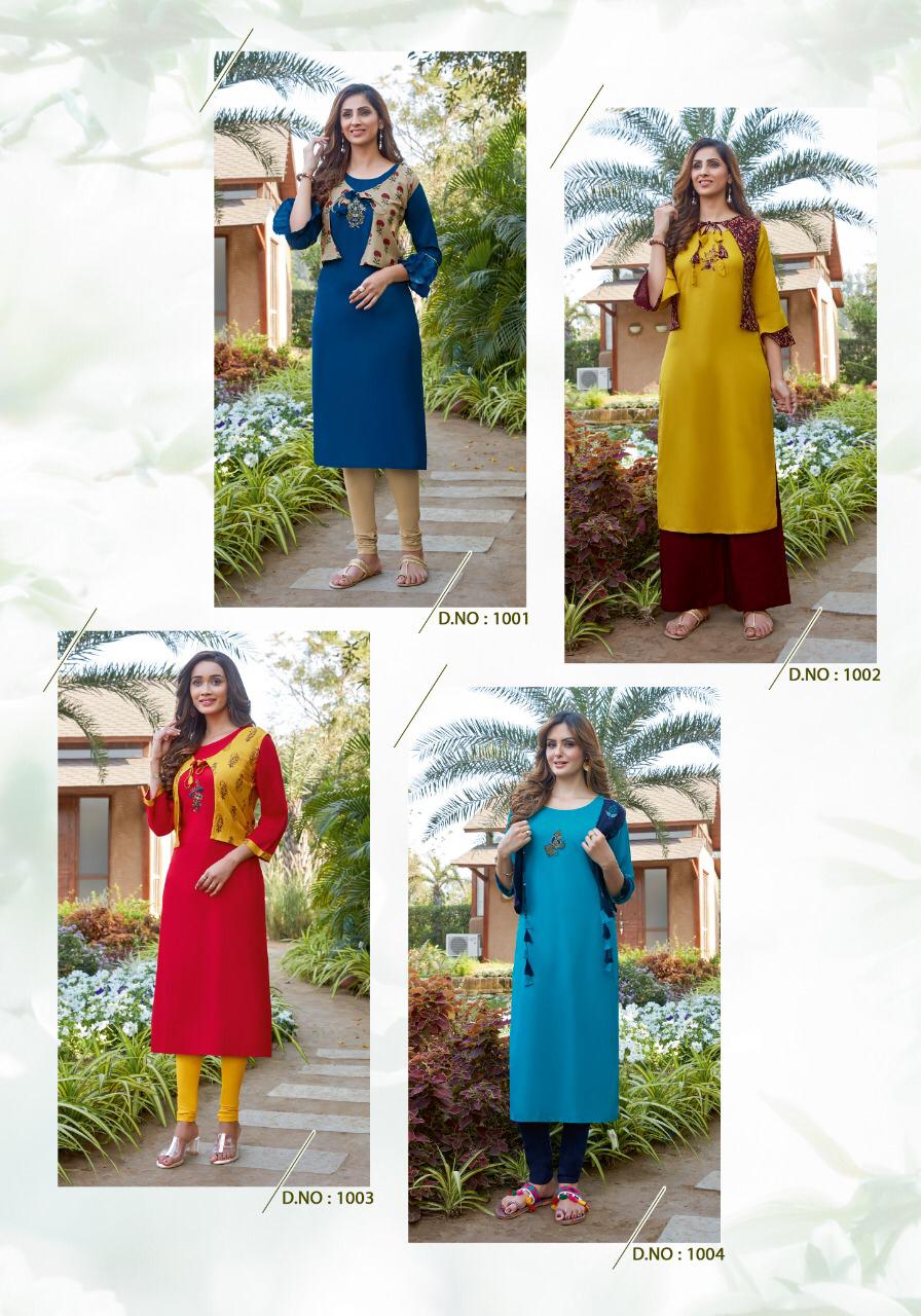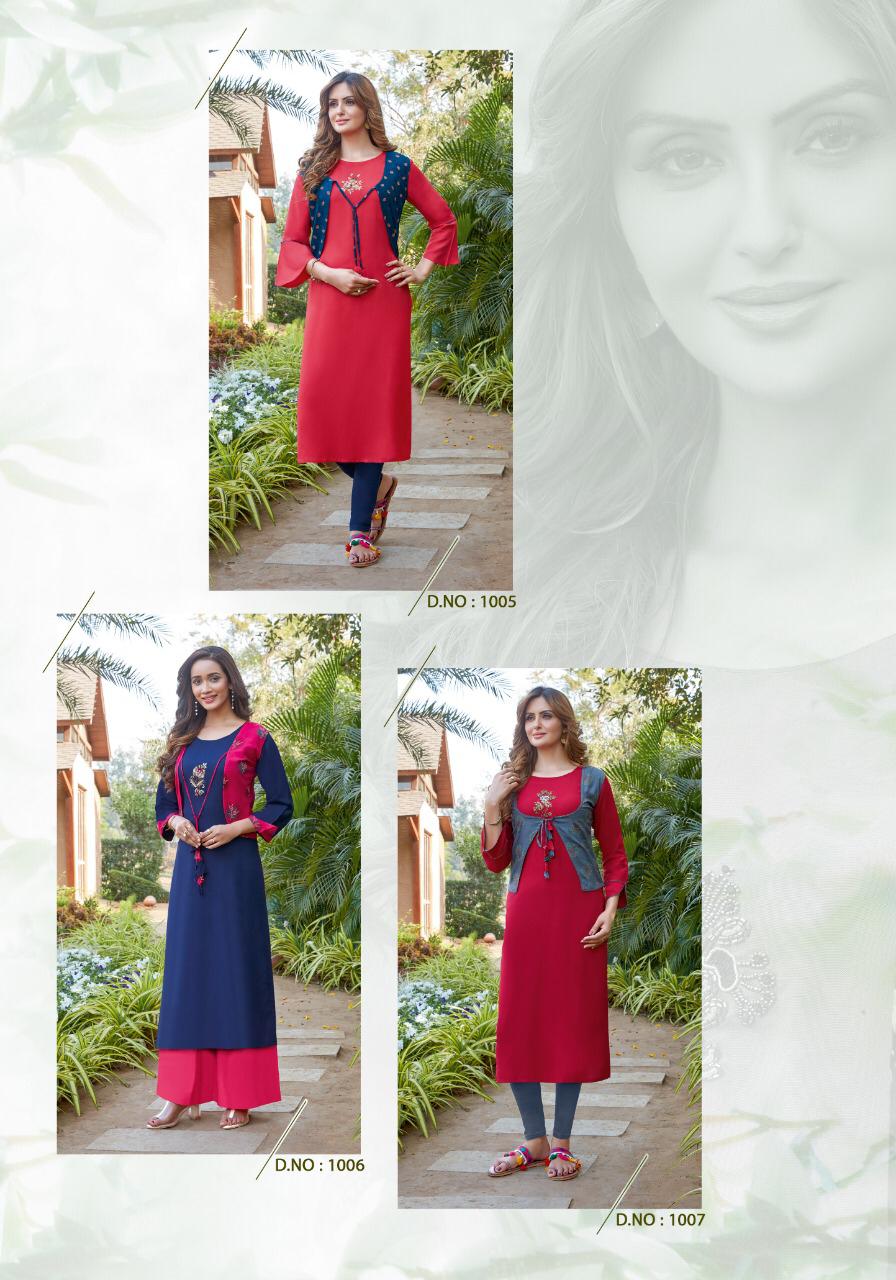 ## *PARRA STUDIO* ## Hello Sir/Madam For This Season Exclusive Designers Kurties *NASHA VOL 1* Catalogue is Coming Soon... *2 PCS CONCEPT* *7 Kurties* With *Koti* Beautiful Catalogue Having Designes Conccept. ?? *EXCLUSIVE COLLECTION* ? *FABRICS* ? TOP :- *REYON 14 KG WITH KHATLI WORK* KOTI :- *REYON PRINT 14 KG* ?Size - *M (38)* *L (40)* *XL (42)* *XXL (44)* *3XL (46)* Top Lenght - *48*" *A Gorgeous Dress With Contemporary Design Would Add Freshness And Stunnig Glamour To Her Look* ?Rate - *530/- ? 5% GST* Set to set Delivery 6-7 days So Please Hurry up Book ur Orders Now.... ?Thanks For ur Kind Support.? *REGARDS* *RANGAT ART* |