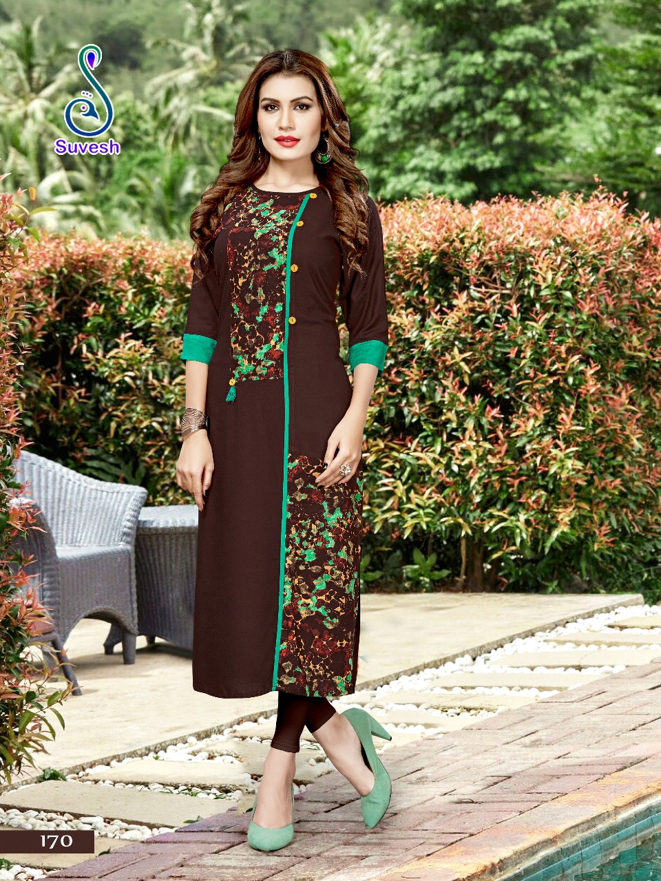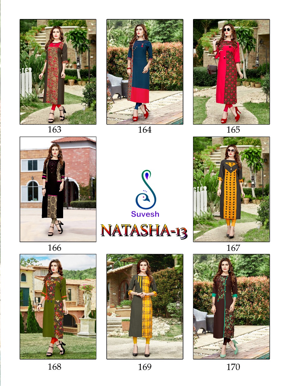 Natasha 13 By Suvesh Series 163 To 170 Reyon Printed Desinger Kurtis Catalog Wholesale Supplier And Dealer Surat