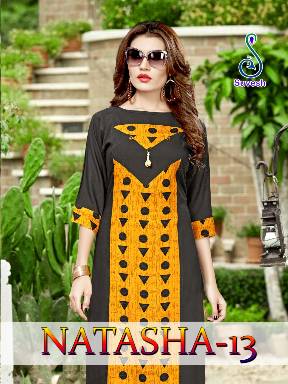 Buy Online Natasha 13 By Suvesh Series 163 To 170 Reyon Printed Desinger Kurtis Catalog Wholesale Supplier And Dealer Surat 8 Pcs of Full Catalogue at Wholesale Price. Looking for Natasha 13 By Suvesh Series 163 To 170 Reyon Printed Desinger Kurtis Catalog Wholesale Supplier And Dealer Surat Full Catalouge at Best Price? Buy Now Natasha 13 By Suvesh Series 163 To 170 Reyon Printed Desinger Kurtis Catalog Wholesale Supplier And Dealer Surat at Wholesale Rate of Rs 3368 with Total 8 Pcs from authroized dealer and supplier of Suvesh Brand. Cost of Each piece is just only Rs 421 which is very low and affordable price to resale the product in your retail store ,This is Surat based Wholesale Supplier & Dealer of Suvesh Brand. Click on Brand name to Know more about Suvesh Brand's products.Call or Whatsapp on 9898838984 for booking or enquiry