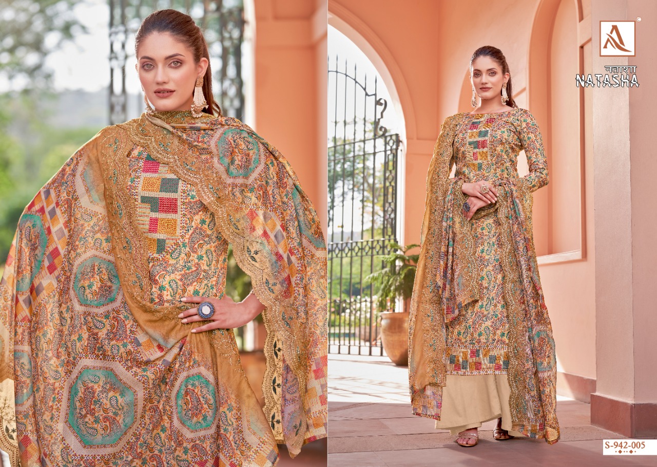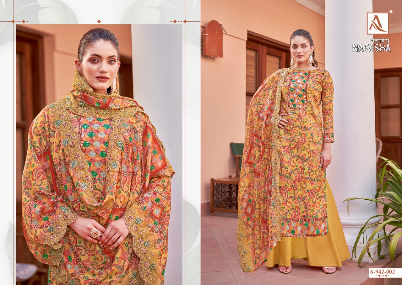 Buy Online Natasha By Alok Suit Wholesale Supplier Traders In Surat 8 Pcs of Full Catalogue at Wholesale Price. Looking for Natasha By Alok Suit Wholesale Supplier Traders In Surat Full Catalouge at Best Price? Buy Now Natasha By Alok Suit Wholesale Supplier Traders In Surat at Wholesale Rate of Rs 6720 with Total 8 Pcs from authroized dealer and supplier of Brand. Cost of Each piece is just only Rs 840 which is very low and affordable price to resale the product in your retail store ,This is Surat based Wholesale Supplier & Dealer of Brand. Click on Brand name to Know more about Brand's products.Call or Whatsapp on 9898838984 for booking or enquiry