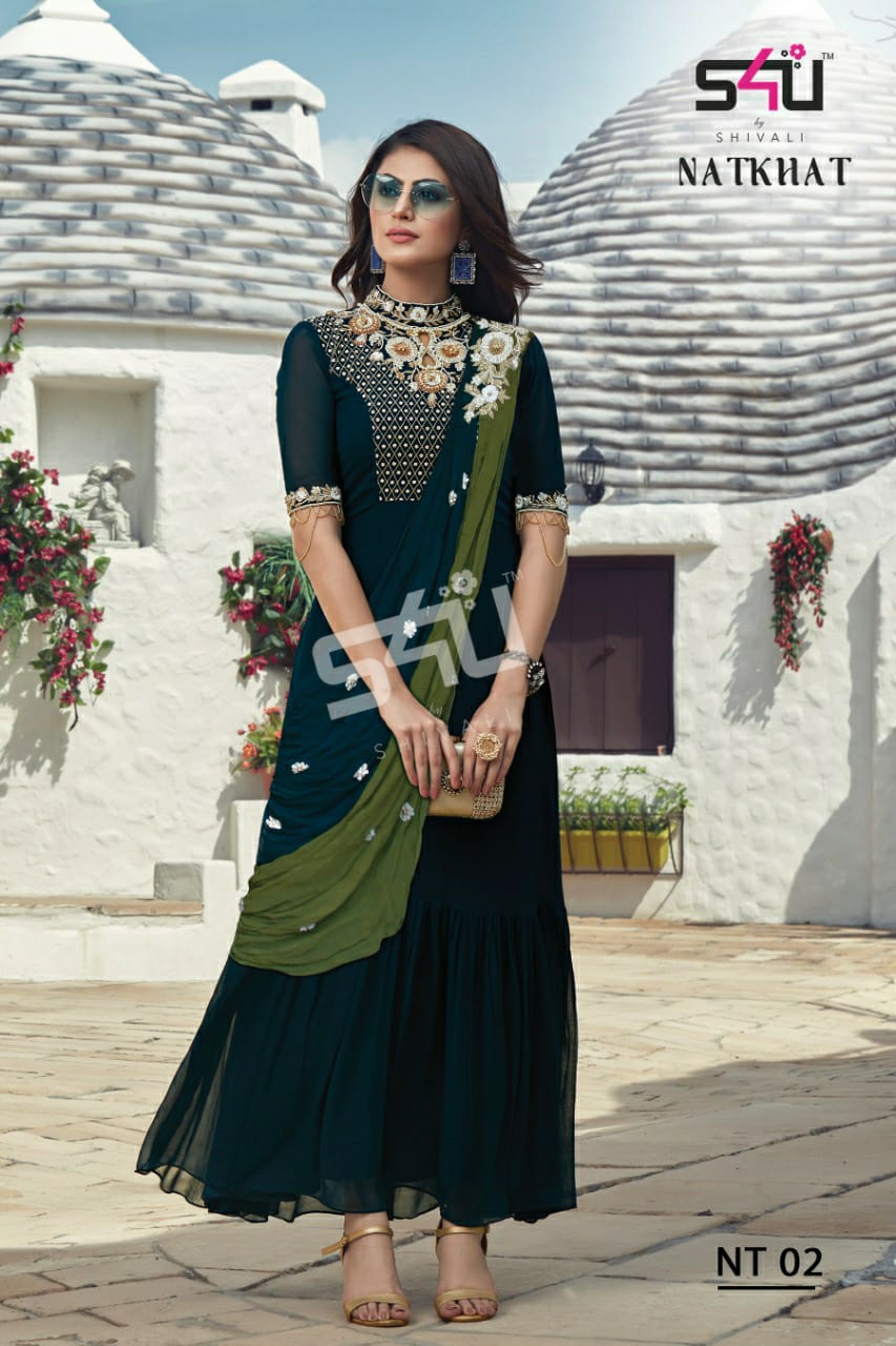 Buy Online Natkhat By S4u Shivali Designer Occasion Wear Indo Western Style Collection Wholesale Supplier And Dealer Surat 5 Pcs of Full Catalogue at Wholesale Price. Looking for Natkhat By S4u Shivali Designer Occasion Wear Indo Western Style Collection Wholesale Supplier And Dealer Surat Full Catalouge at Best Price? Buy Now Natkhat By S4u Shivali Designer Occasion Wear Indo Western Style Collection Wholesale Supplier And Dealer Surat at Wholesale Rate of Rs 9875 with Total 5 Pcs from authroized dealer and supplier of S4U Brand. Cost of Each piece is just only Rs 1975 which is very low and affordable price to resale the product in your retail store ,This is Surat based Wholesale Supplier & Dealer of S4U Brand. Click on Brand name to Know more about S4U Brand's products.Call or Whatsapp on 9898838984 for booking or enquiry
