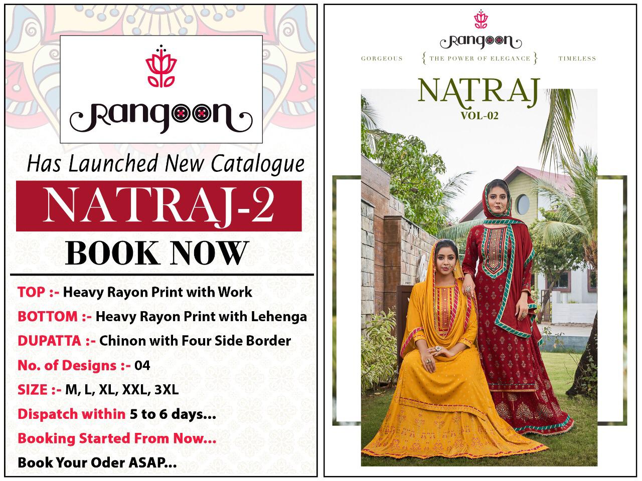 Buy Online Natraj Vol 2 By Rangoon Wholesale Supplier 4 Pcs of Full Catalogue at Wholesale Price. Looking for Natraj Vol 2 By Rangoon Wholesale Supplier Full Catalouge at Best Price? Buy Now Natraj Vol 2 By Rangoon Wholesale Supplier at Wholesale Rate of Rs 4396 with Total 4 Pcs from authroized dealer and supplier of RANGOON Brand. Cost of Each piece is just only Rs 1099 which is very low and affordable price to resale the product in your retail store ,This is Surat based Wholesale Supplier & Dealer of RANGOON Brand. Click on Brand name to Know more about RANGOON Brand's products.Call or Whatsapp on 9898838984 for booking or enquiry
