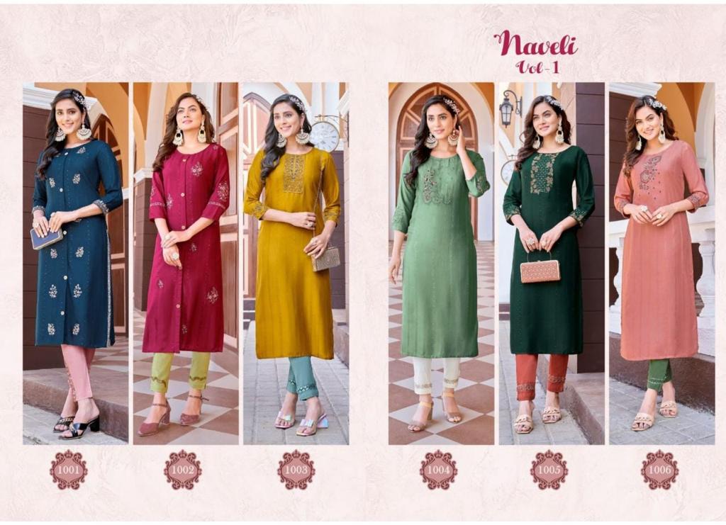 Buy Online Naveli Fancy Kurti Pants Collection 6 Pcs of Full Catalogue at Wholesale Price. Looking for Naveli Fancy Kurti Pants Collection Full Catalouge at Best Price? Buy Now Naveli Fancy Kurti Pants Collection at Wholesale Rate of Rs 0 with Total 6 Pcs from authroized dealer and supplier of Brand. Cost of Each piece is just only Rs 0 which is very low and affordable price to resale the product in your retail store ,This is Surat based Wholesale Supplier & Dealer of Brand. Click on Brand name to Know more about Brand's products.Call or Whatsapp on 9898838984 for booking or enquiry