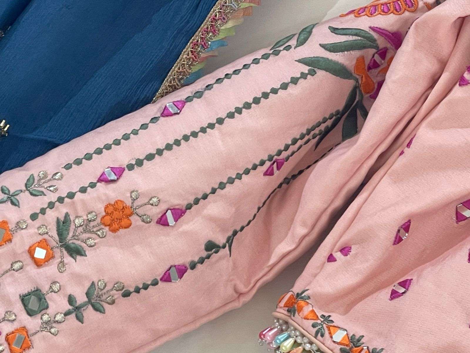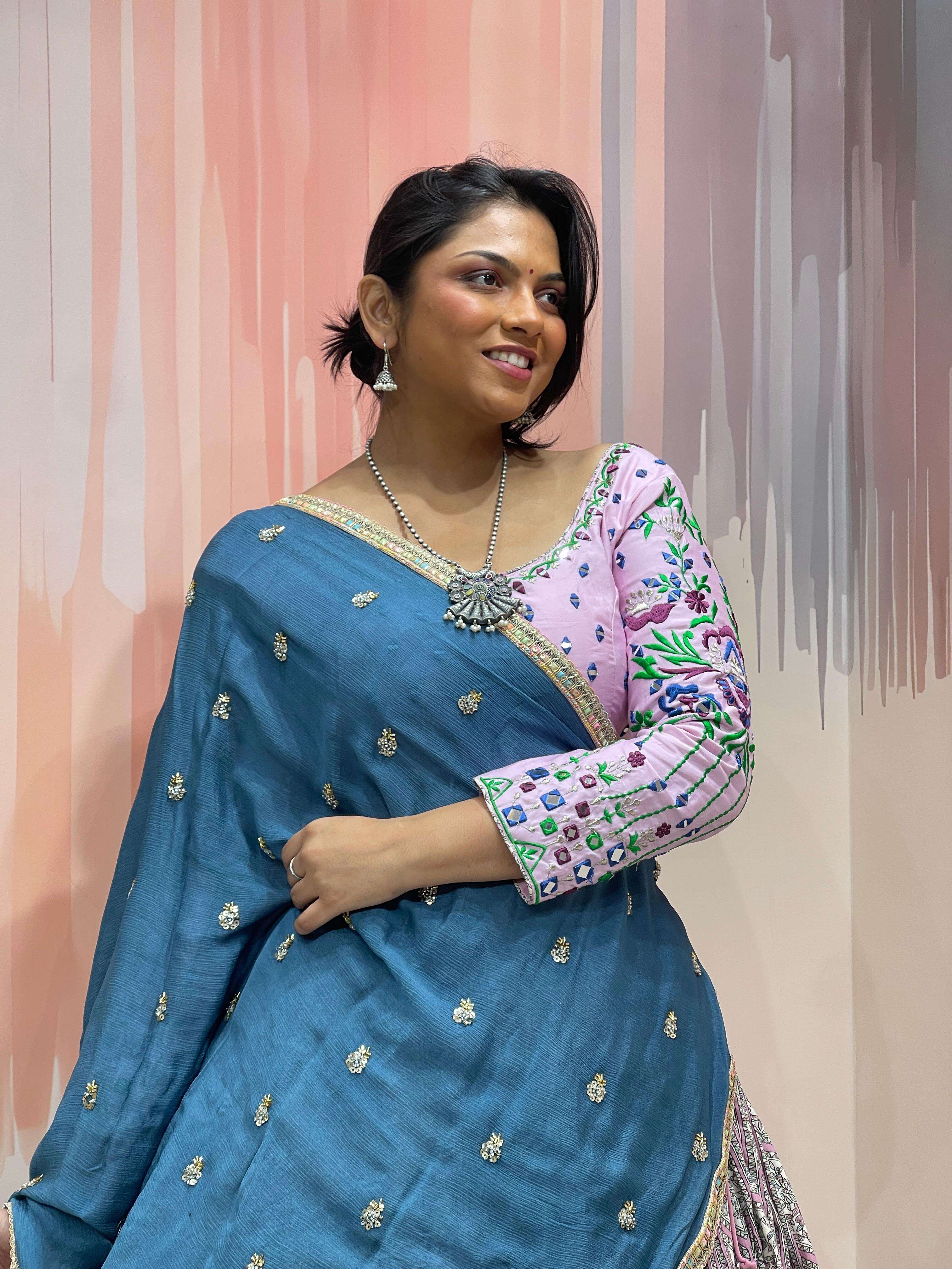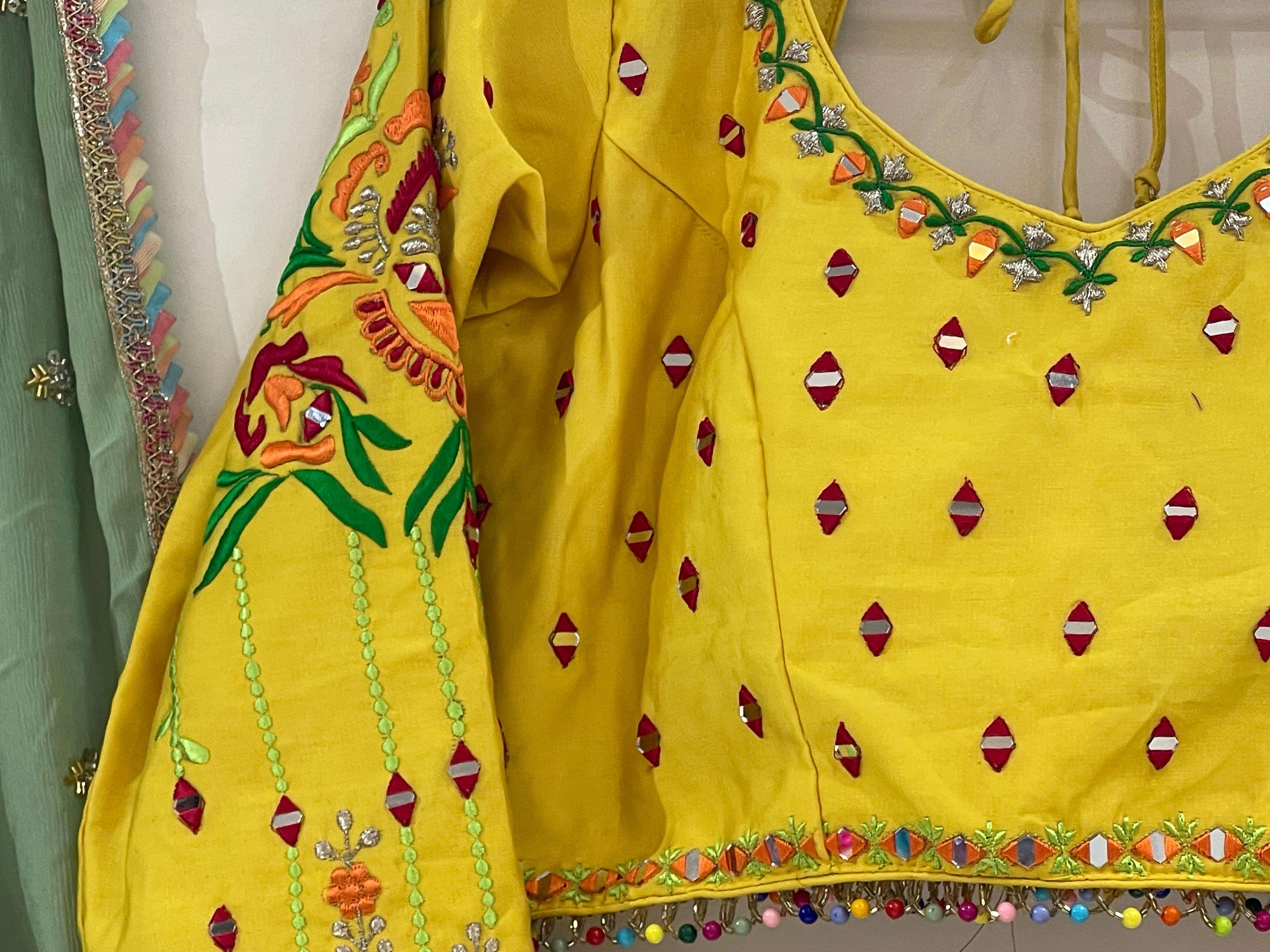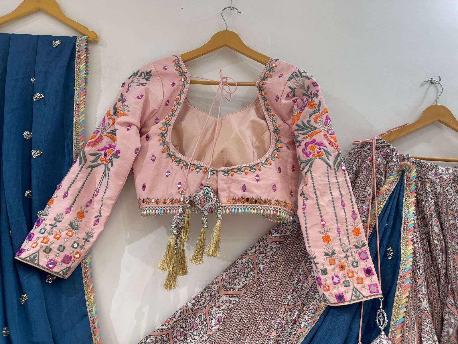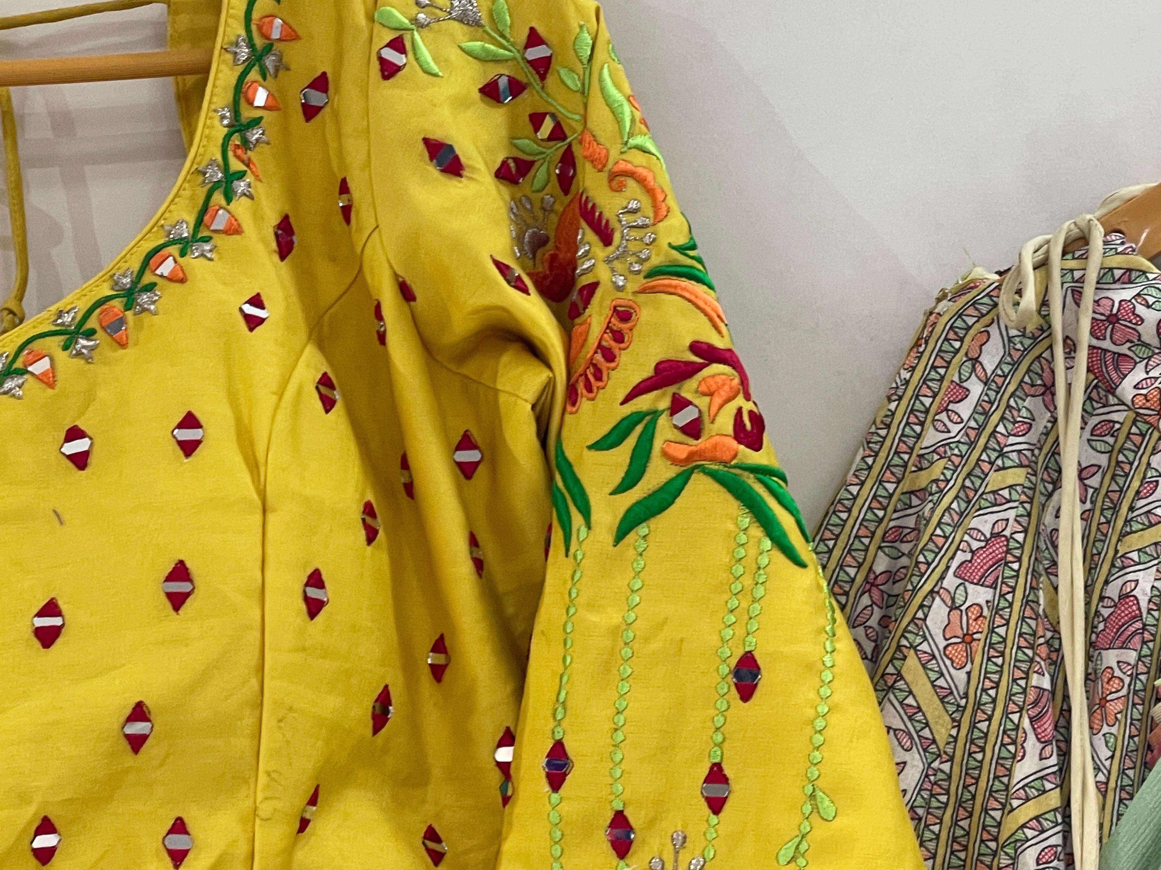 *Blouse*: *Designer Indo western fusion style Full Long sleeves Real mirror work heavy thread embroidery designer 🪡 work blouse 40” plus margin 4” for Size (margin up to 44”)*