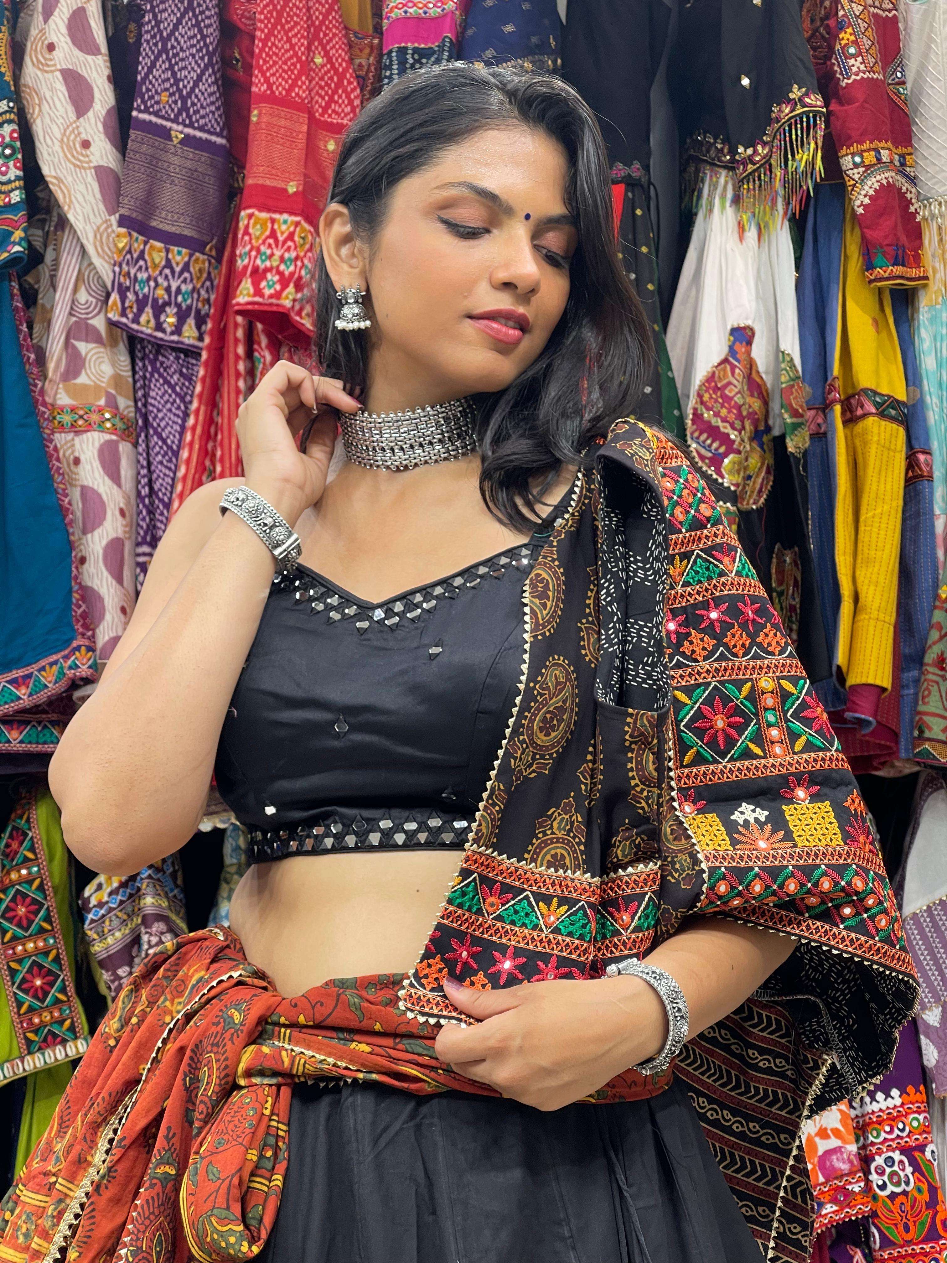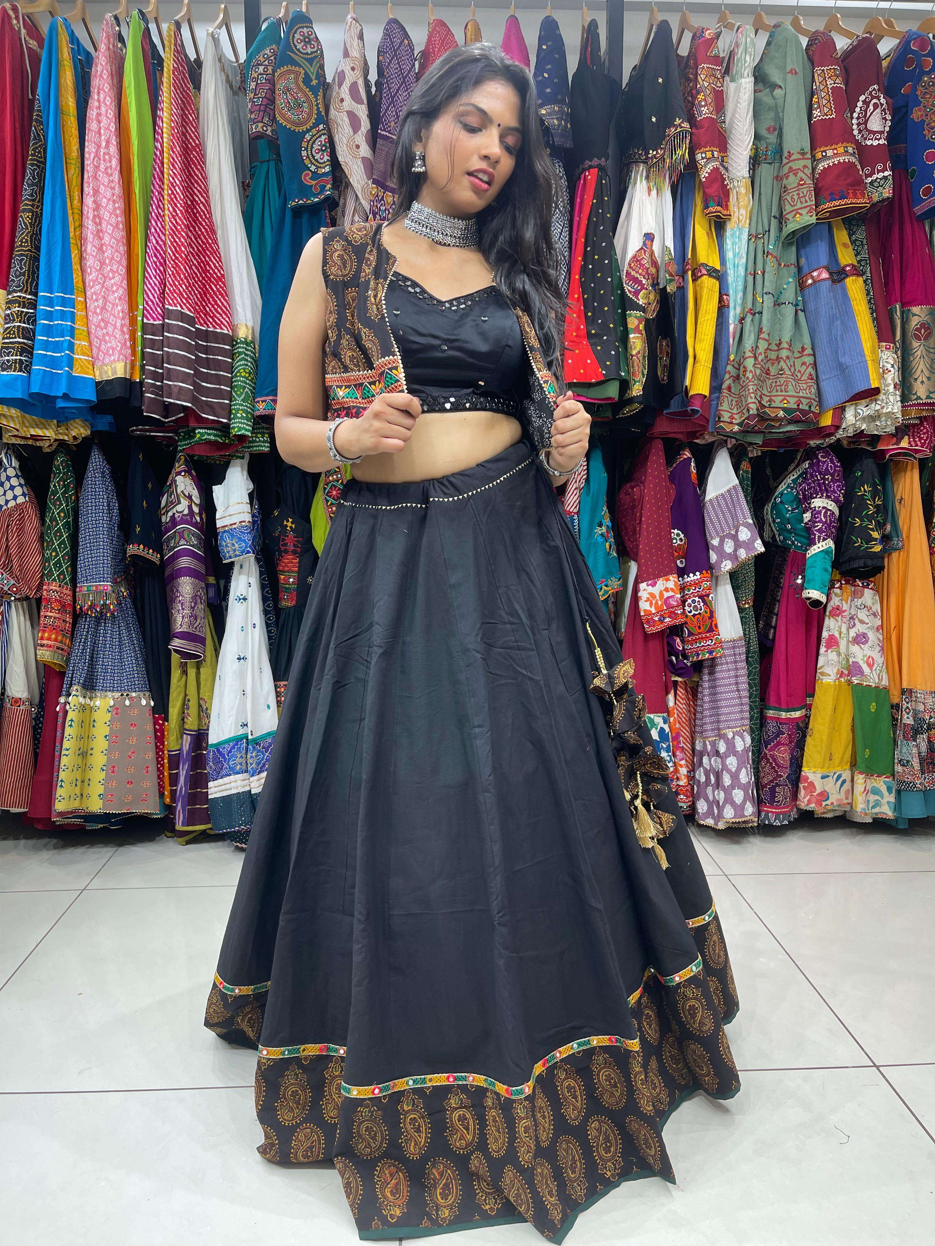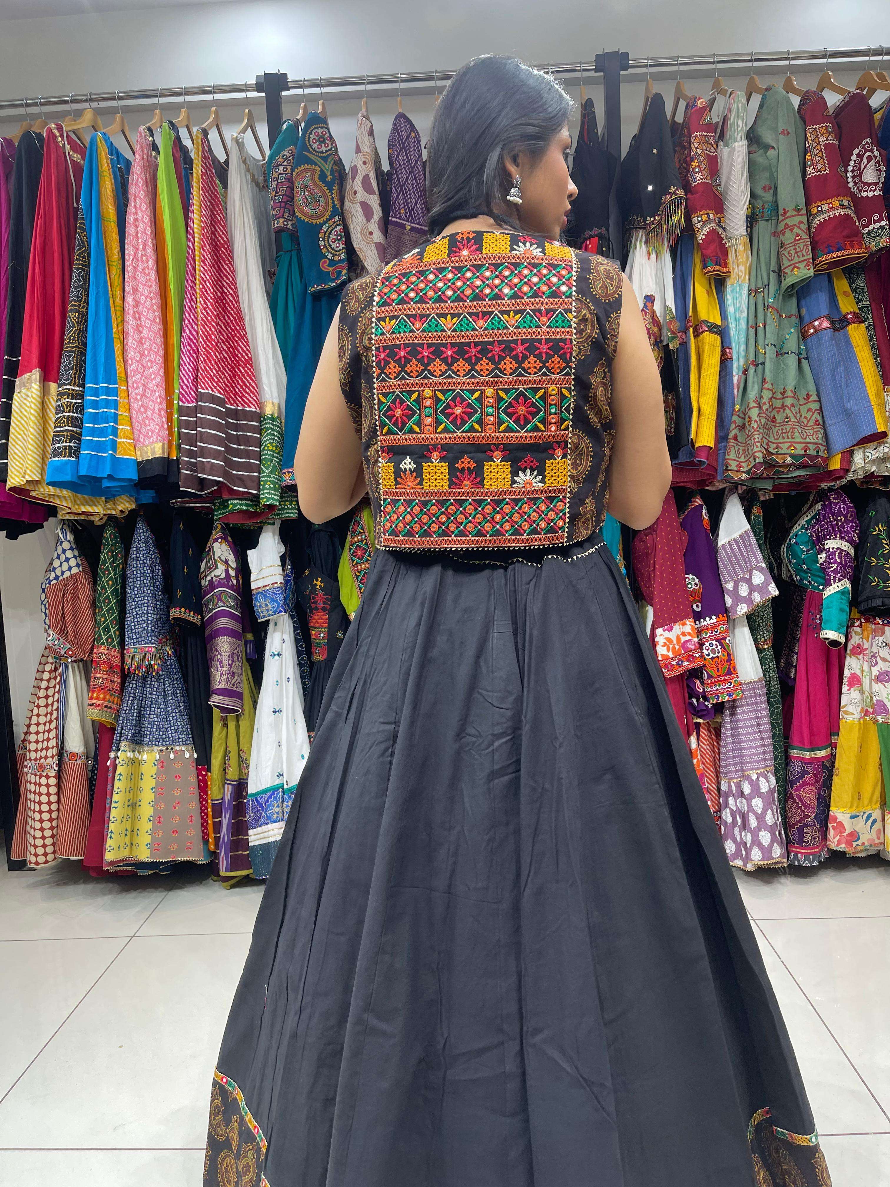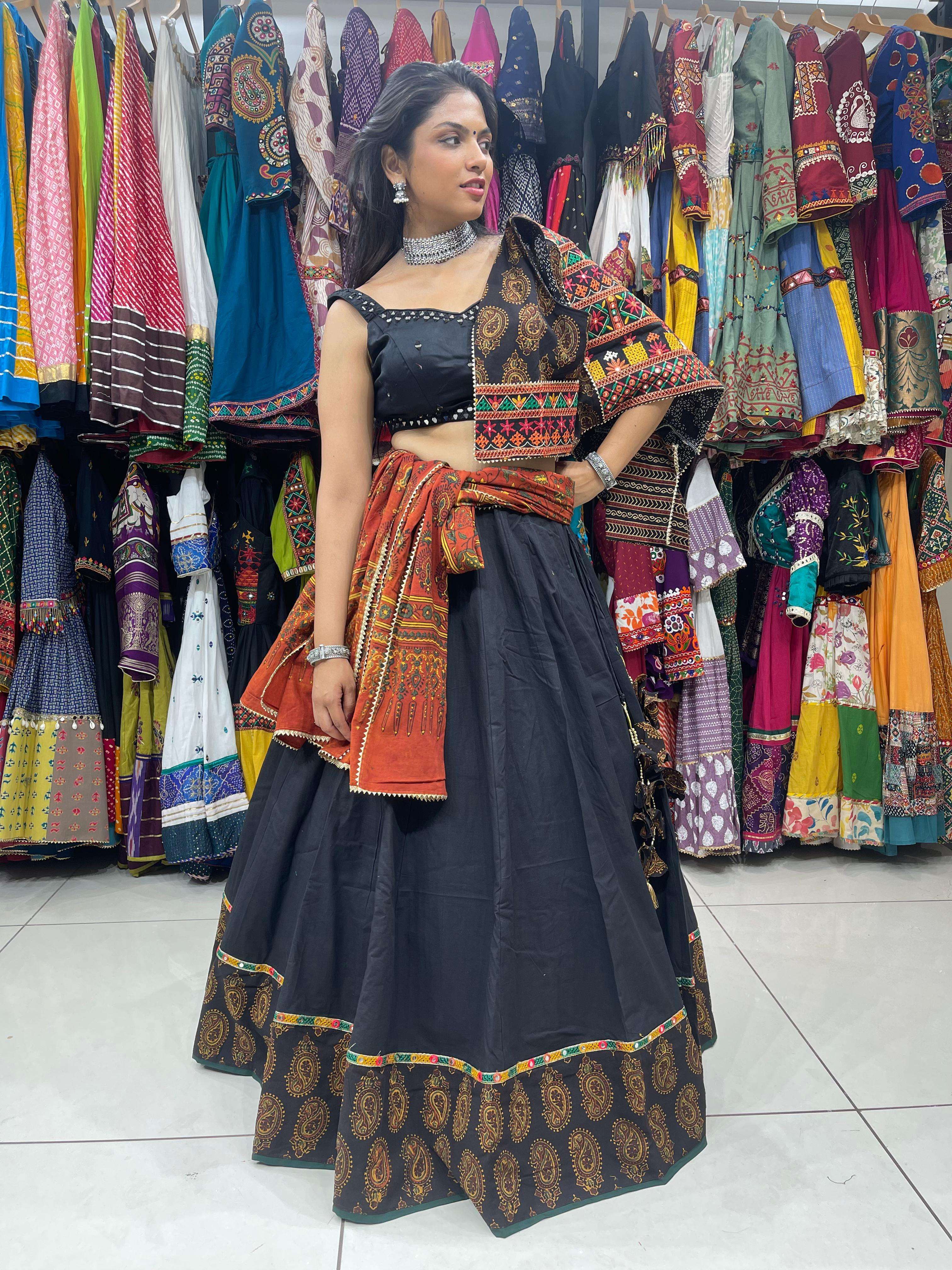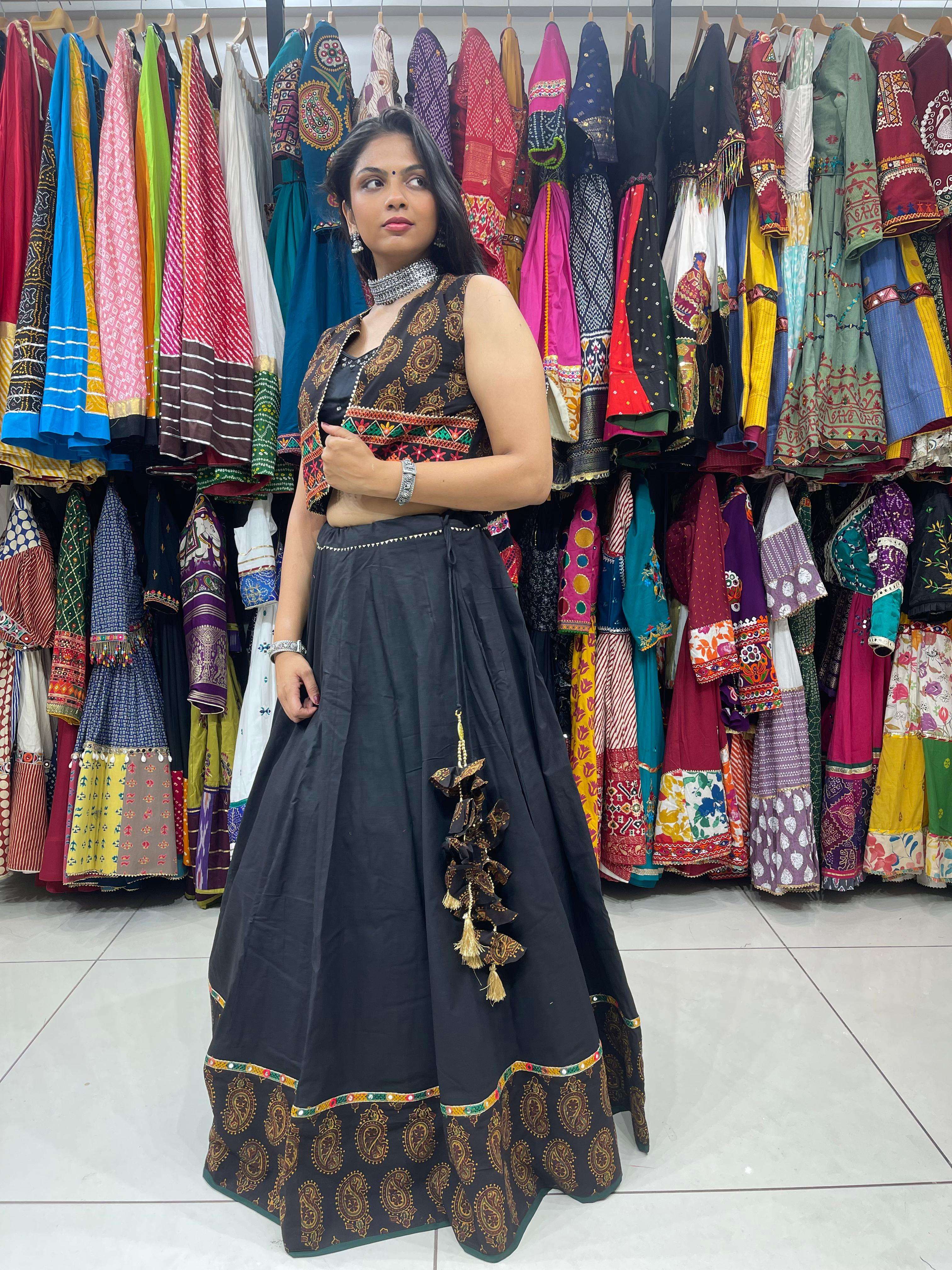 *Traditional elegant original mirror work jacket style ajrakh Designer Blouse In trend latest Classic best seller Chaniya Choli*