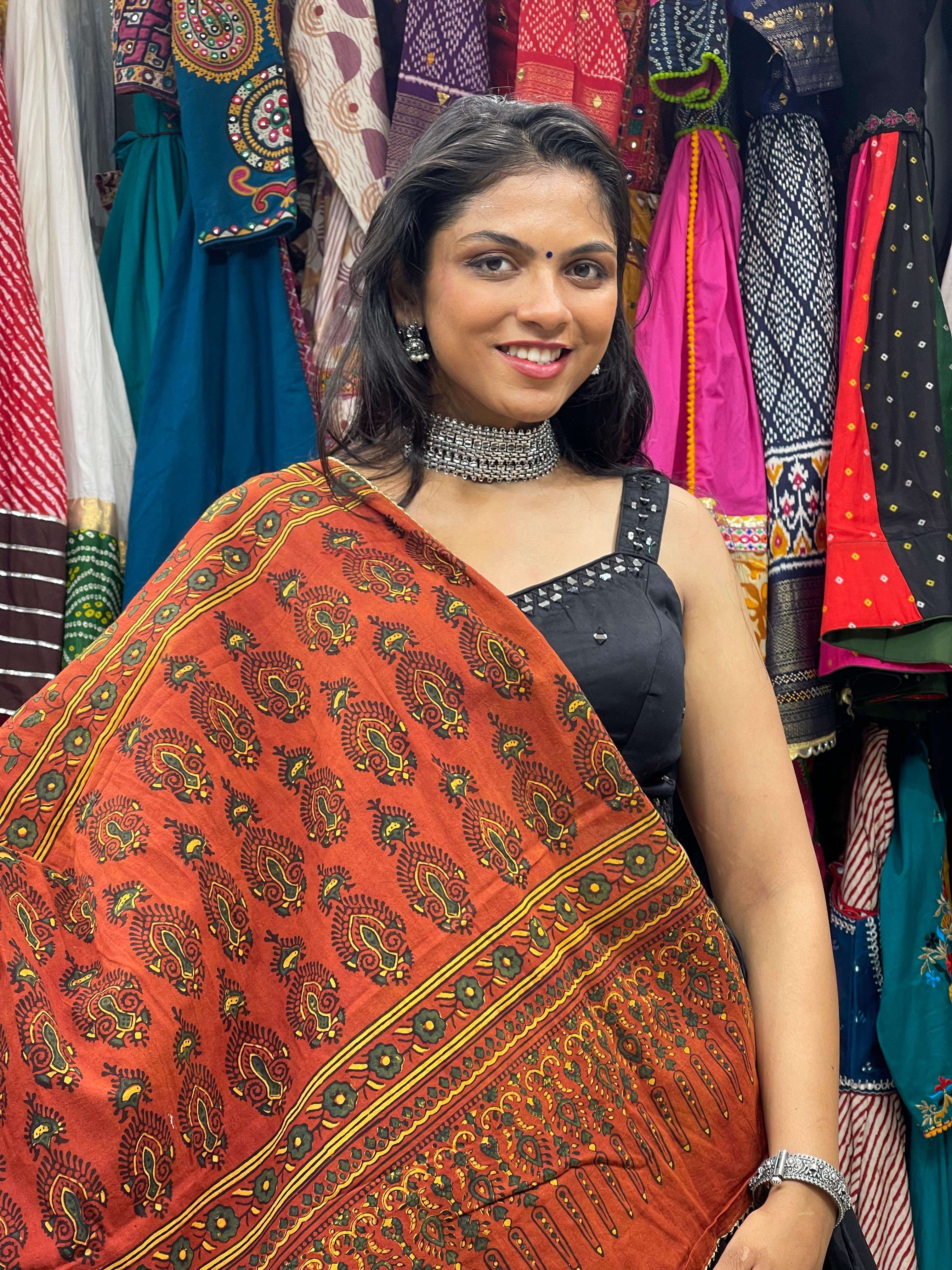 *Dupatta : *Soft Pure Cotton all over elegant ajrakh print beautiful full length Dupatta kutch work*