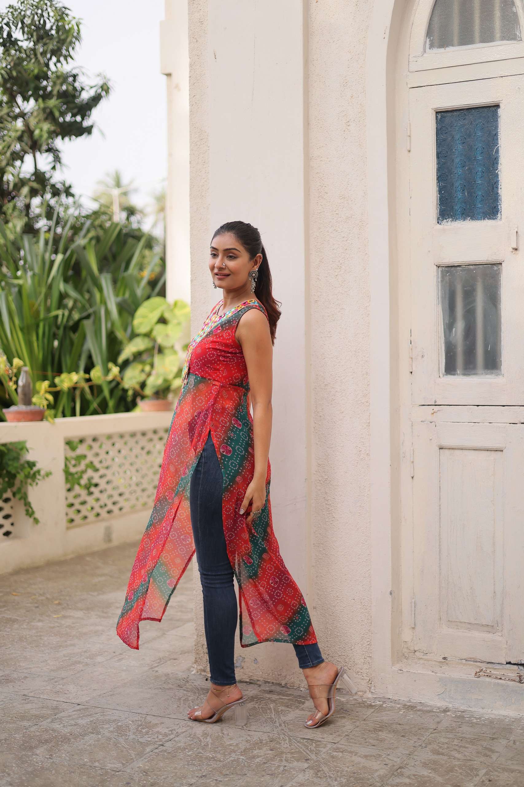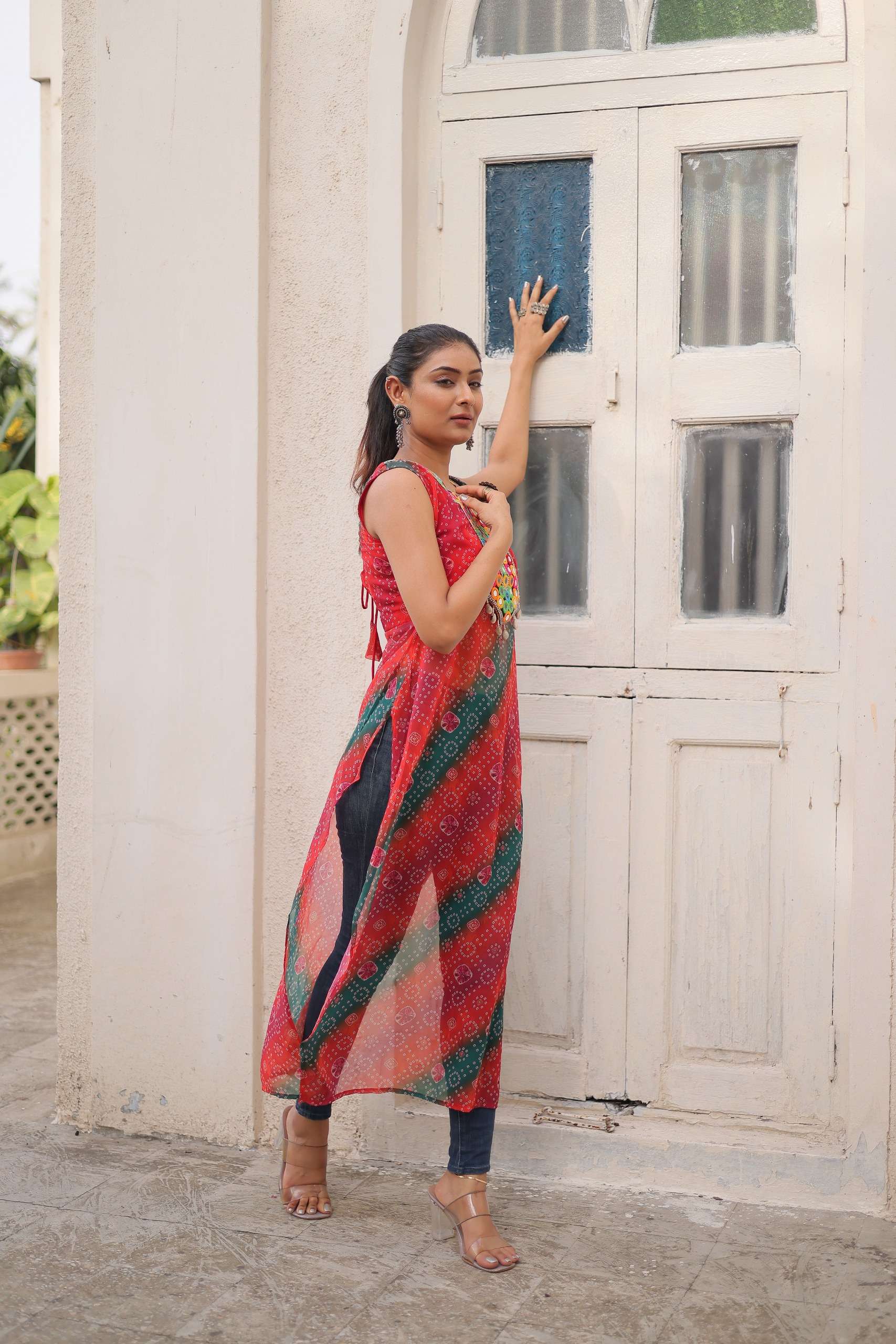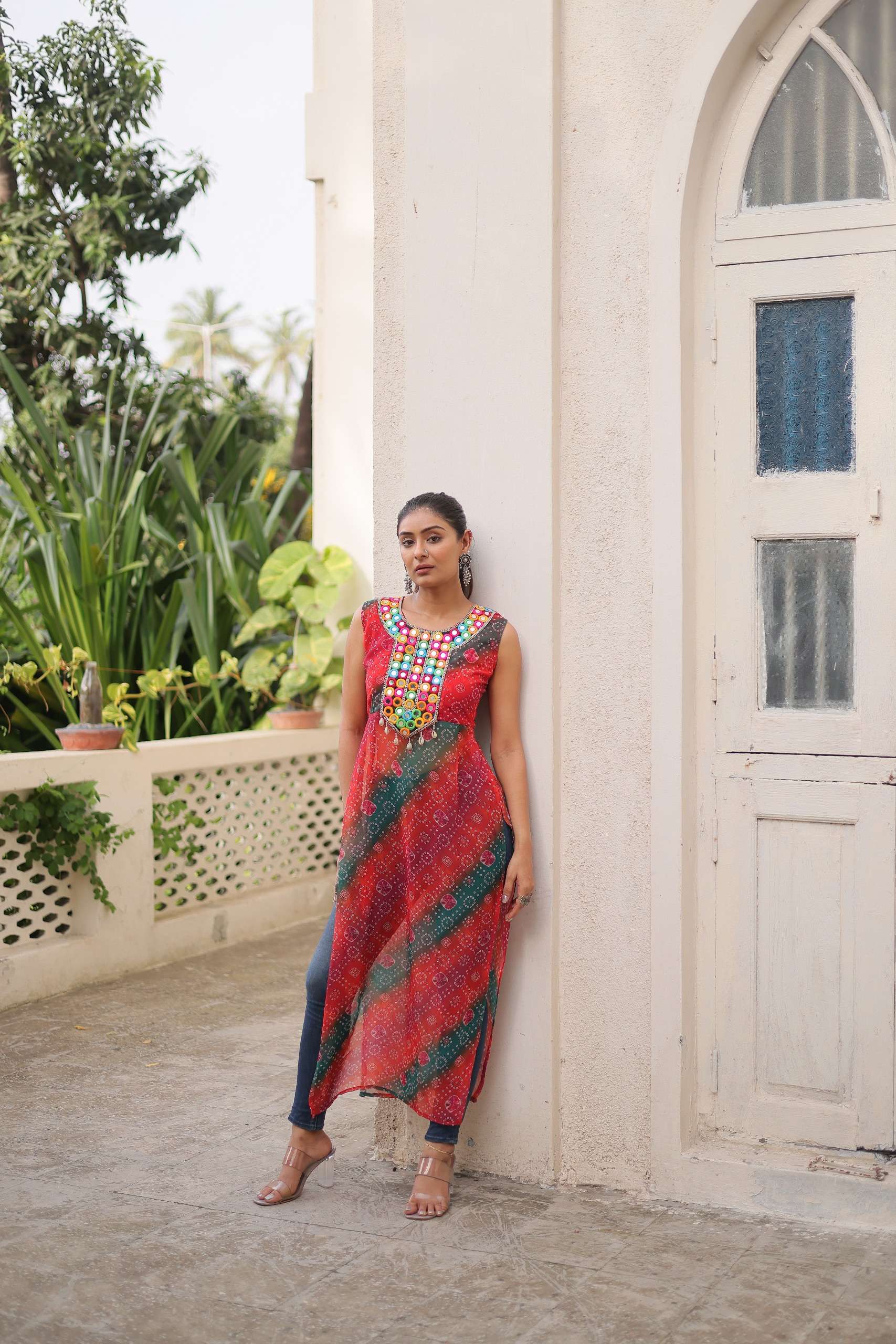👉🏻 *KURTI* :- 👇🏻 👉🏻 *Fabrics & Work* :- Georgette With Kutchi Gamthi Mirror & Codi lace Work. 👉🏻 *Size* :- L Size (40 Inch Stitched) {User can adjust From 38" to 44" for your body comfort)} 👉🏻 *Sleeves* :- Sleevesless 👉🏻 *Length* :- 52 Inch 👉🏻 *Neck* :- Round Neck as model 👉🏻 *Lining (Inner)* :- Cotton (Top only )