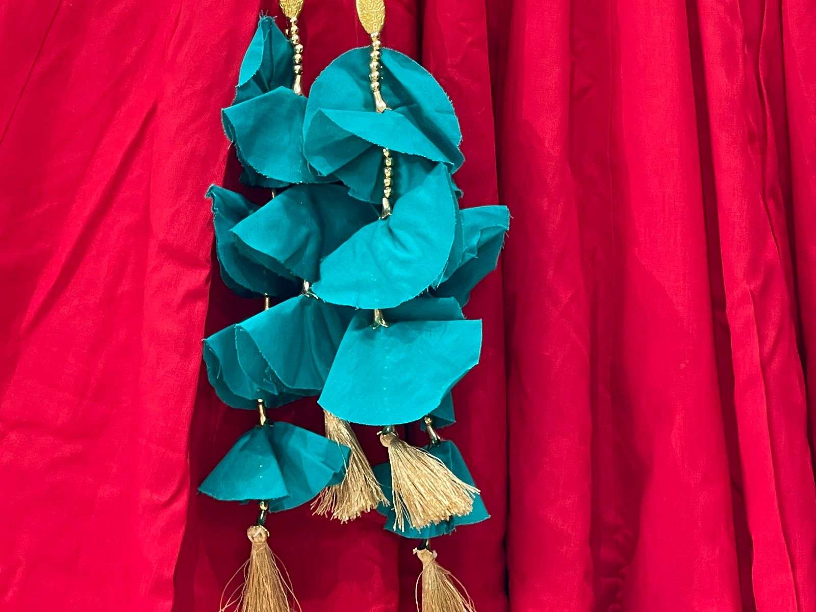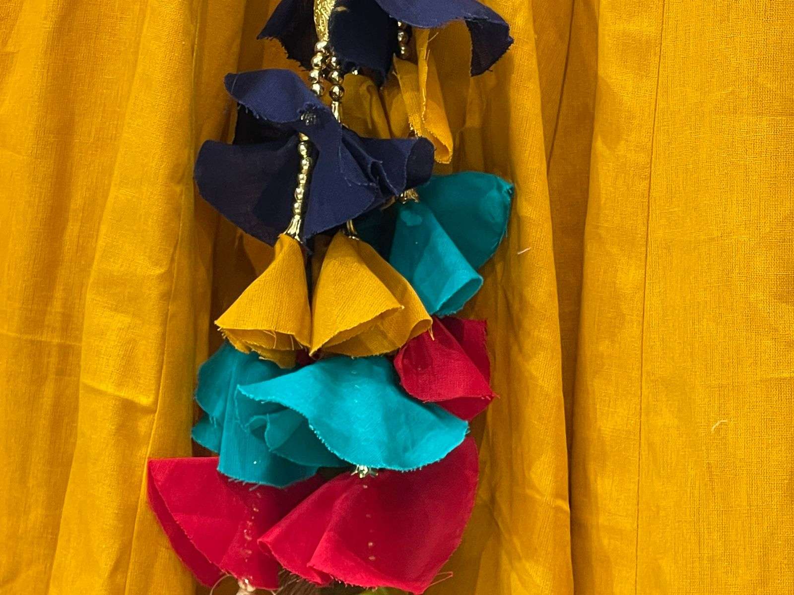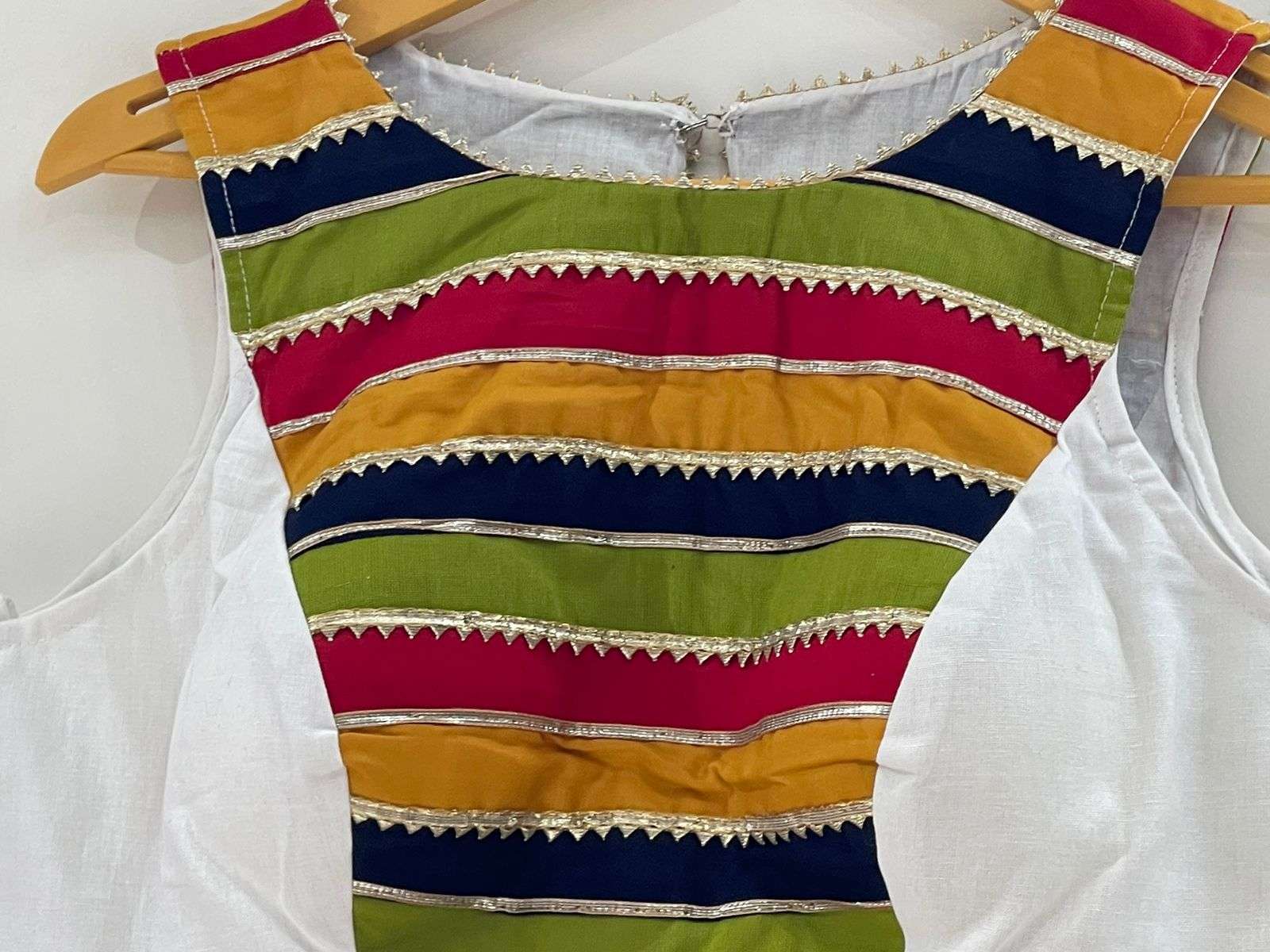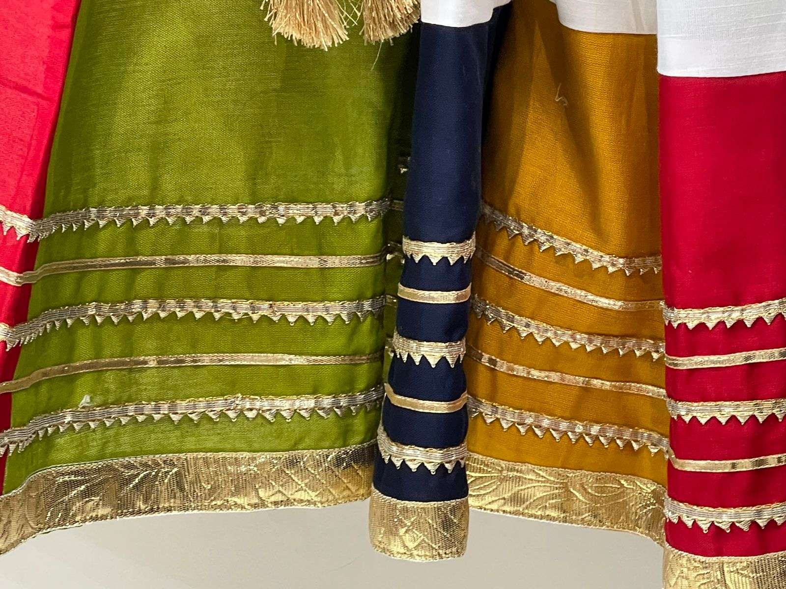 *Skirt/bottom*: *Soft cotton vibrant Bright 3 colour combinations classic Colourful exclusive Elegant Multiple Colour Border 7 to 7.5 Mtrs full flair Chaniya & long colour ful latkan which gives perfect look to lehenga* *Length 40/41”* *Upto 42/44” waist*
