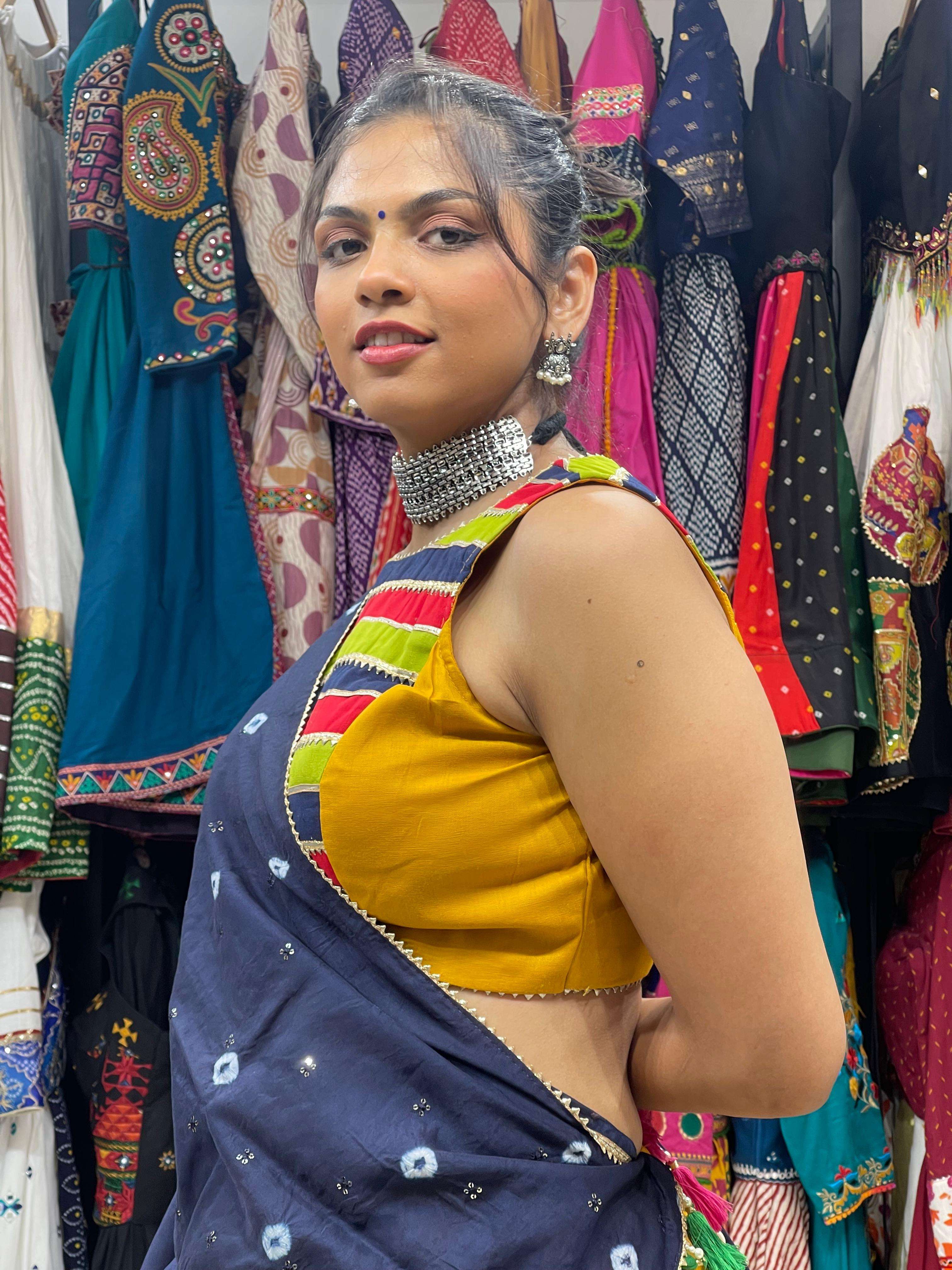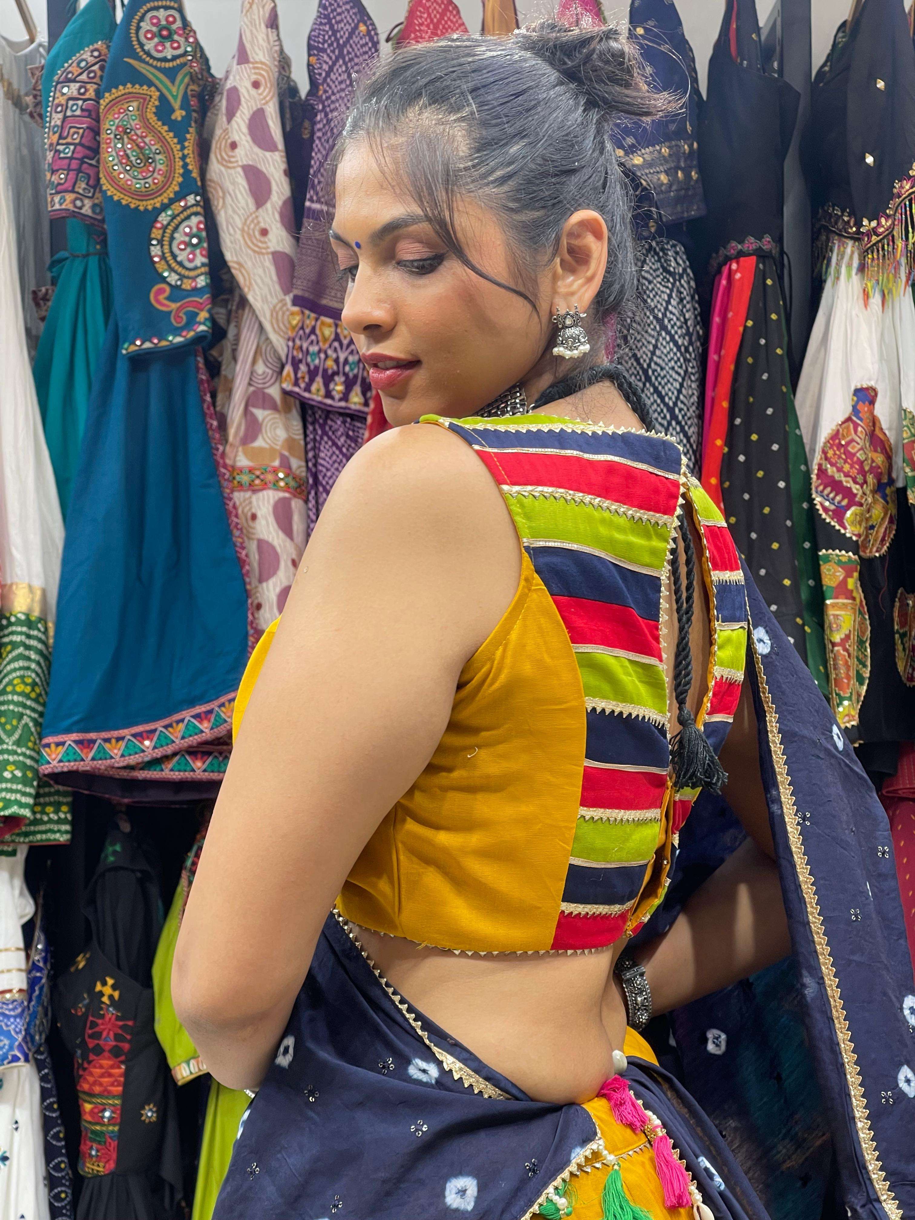 *Blouse*: *Designer Colourfull Exclusive Stripes Sleeveless back Eye cut pattern unique style designer 🪡 blouse 40” plus margin 2” for Size L* (margin up to 42)