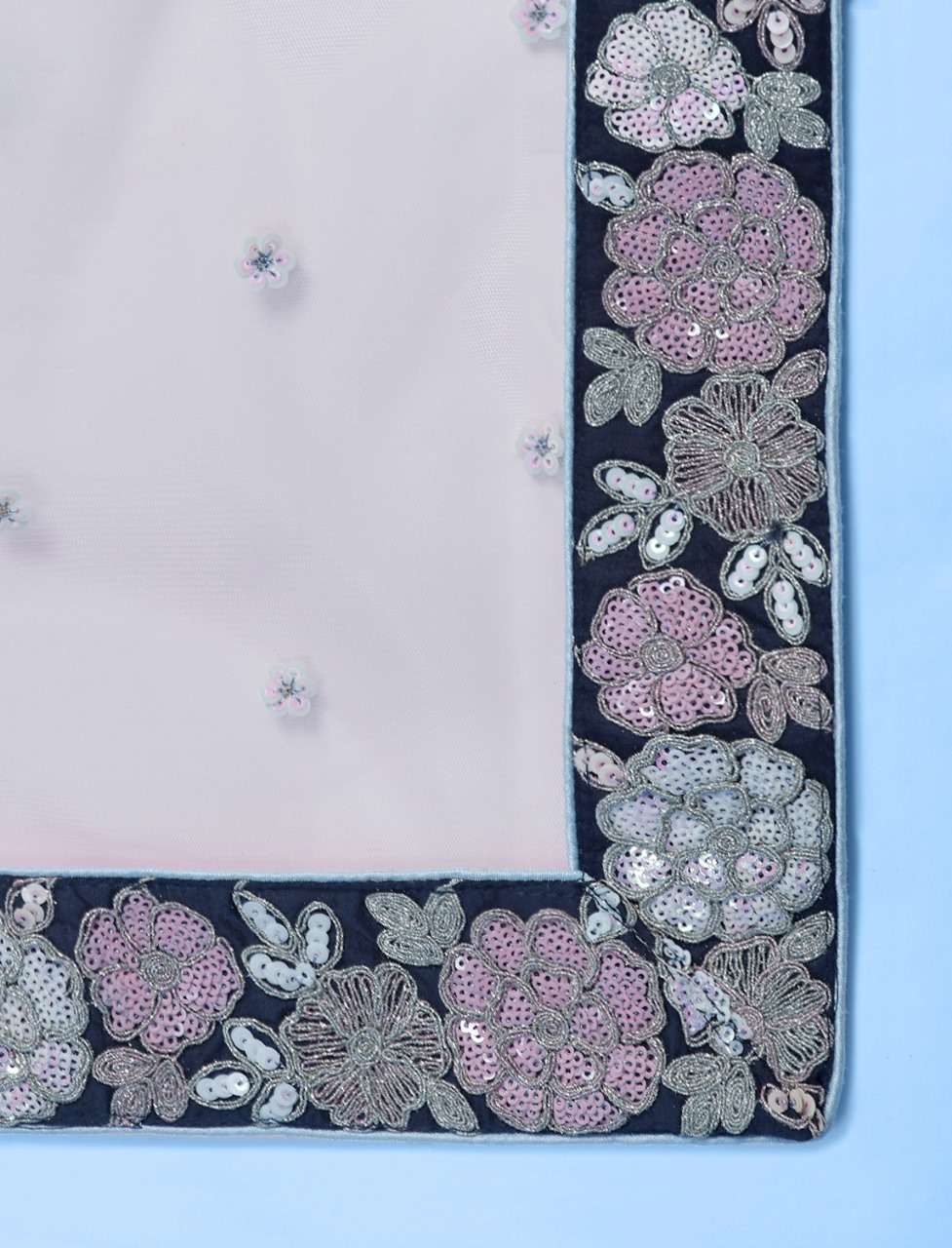 • Lehenga Stitching Note:- Shantoon inner with 2 layers of Can Can 16 and 10 inch with 2 layers of Buckram 12 and 4 inch is given together in lehenga. • Dupatta:- Pink Net Dupatta has a multi colour sequins work Ethnic motif with Embroidery lace Border. • Blouse:- Navy Blue Color Georgette Unstitched Blouse With Sequins and Coding Work. |