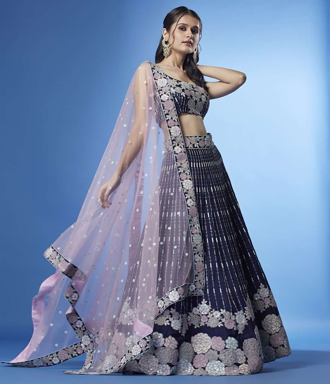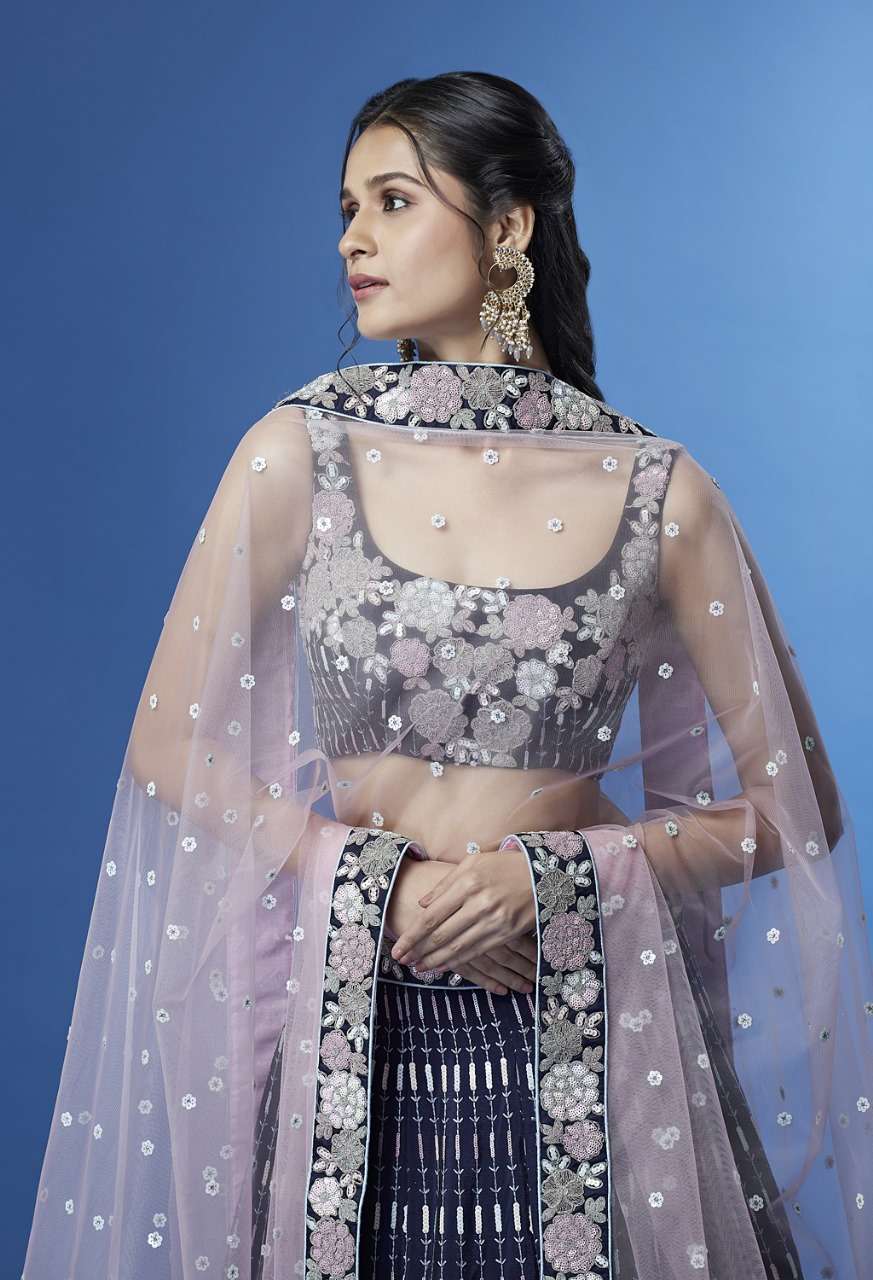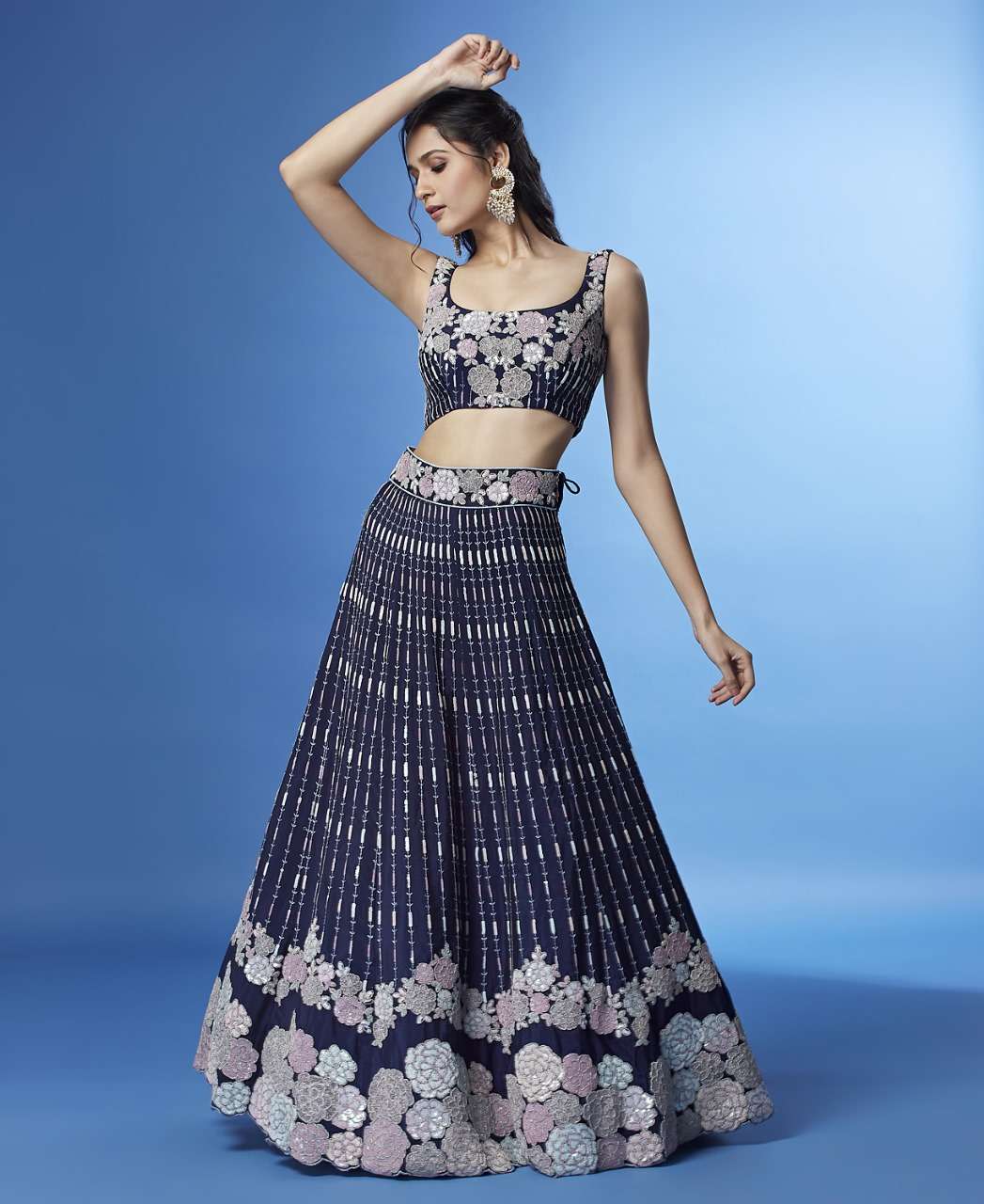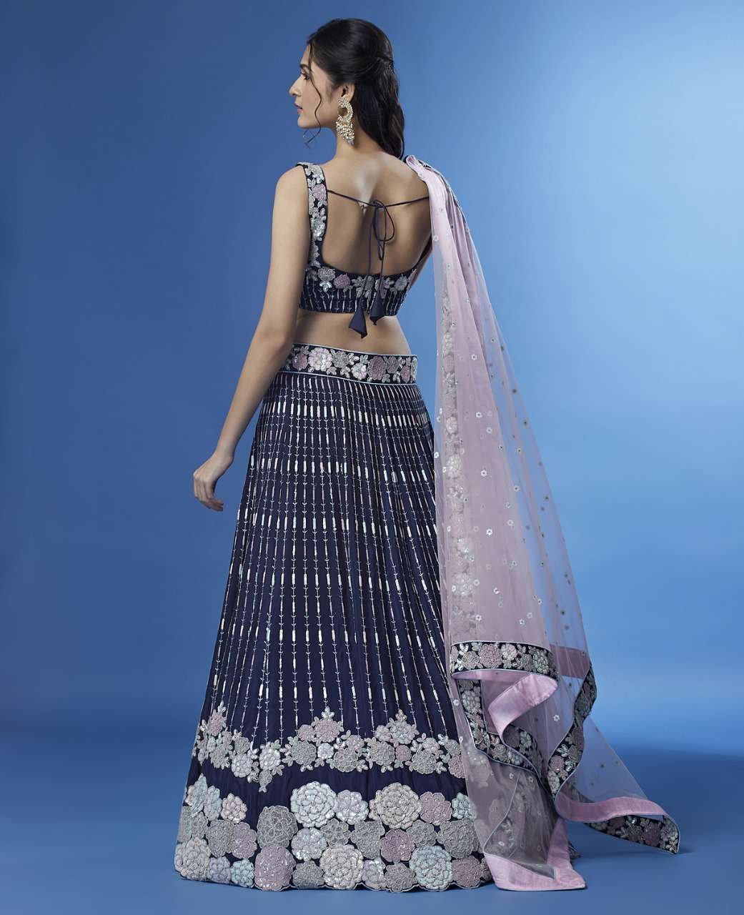 Navy Blue Color Georgette Multi-Sequins Work Semi-Stitched Lehenga Rate 6075+12% GST