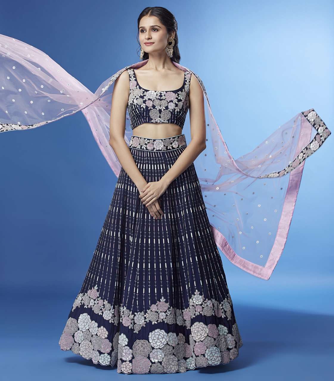 | Catalog | Navy Blue Color Georgette Multi-Sequins Work Semi-Stitched Lehenga |