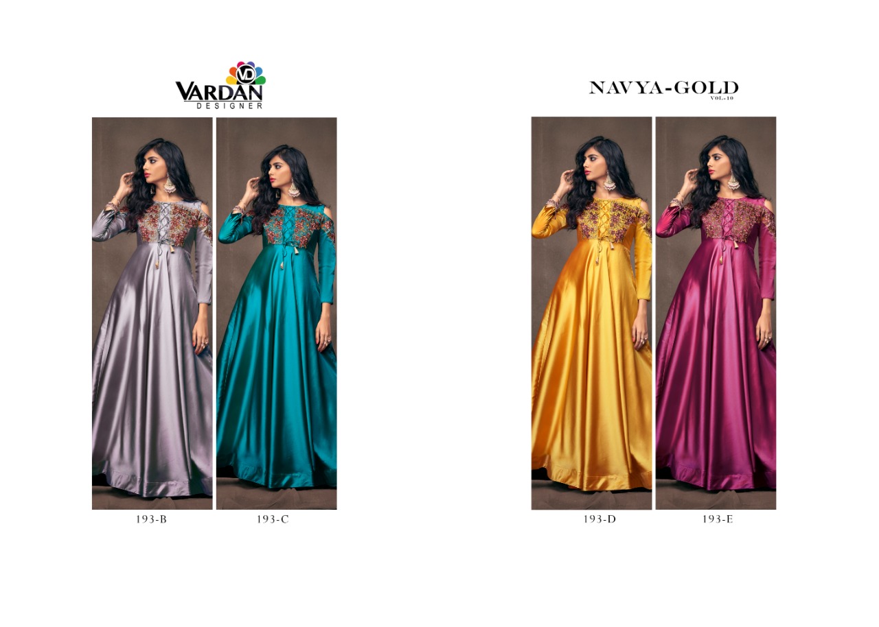 Navya Vol 10 Gold By Vardan Designer Fancy Party Wear Gown Single And Set Stockiest And Supplier From Surat