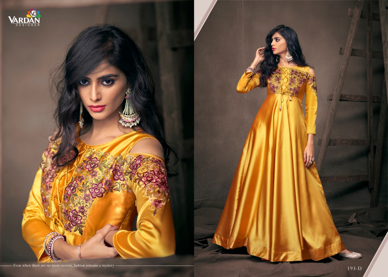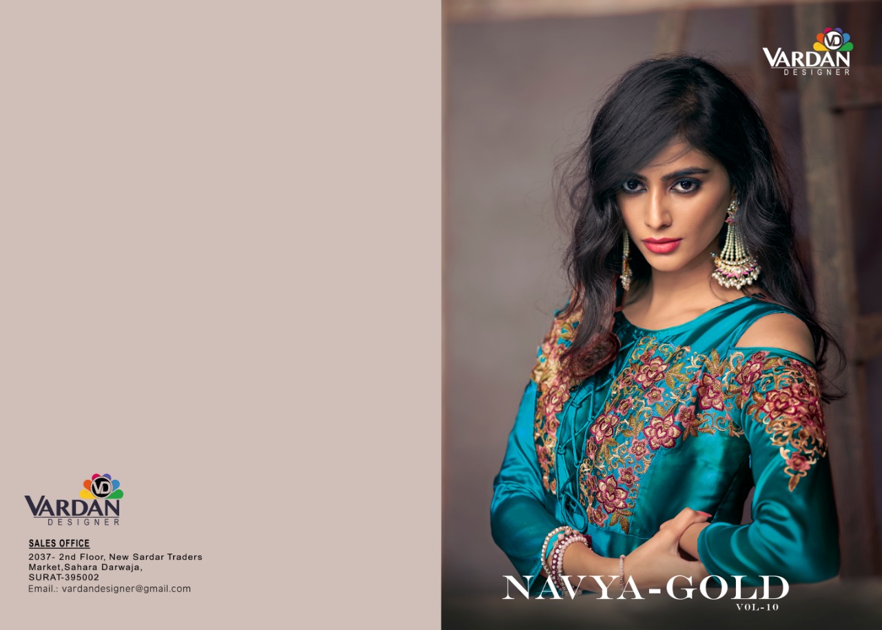 Buy Online Navya Vol 10 Gold By Vardhan Silk Designer Party Wear Gowns Wholesale Supplier Gujarat 4 Pcs of Full Catalogue at Wholesale Price. Looking for Navya Vol 10 Gold By Vardhan Silk Designer Party Wear Gowns Wholesale Supplier Gujarat Full Catalouge at Best Price? Buy Now Navya Vol 10 Gold By Vardhan Silk Designer Party Wear Gowns Wholesale Supplier Gujarat at Wholesale Rate of Rs 4160 with Total 4 Pcs from authroized dealer and supplier of VARDAN DESIGNER Brand. Cost of Each piece is just only Rs 1040 which is very low and affordable price to resale the product in your retail store ,This is Surat based Wholesale Supplier & Dealer of VARDAN DESIGNER Brand. Click on Brand name to Know more about VARDAN DESIGNER Brand's products.Call or Whatsapp on 9898838984 for booking or enquiry