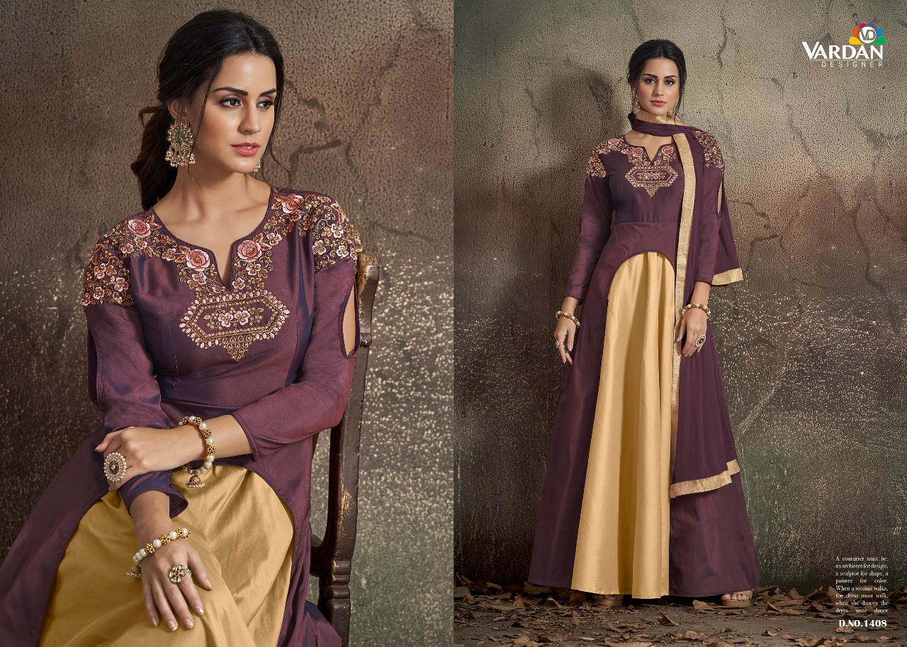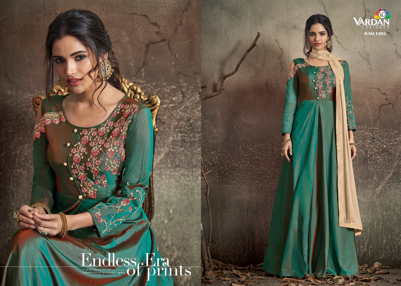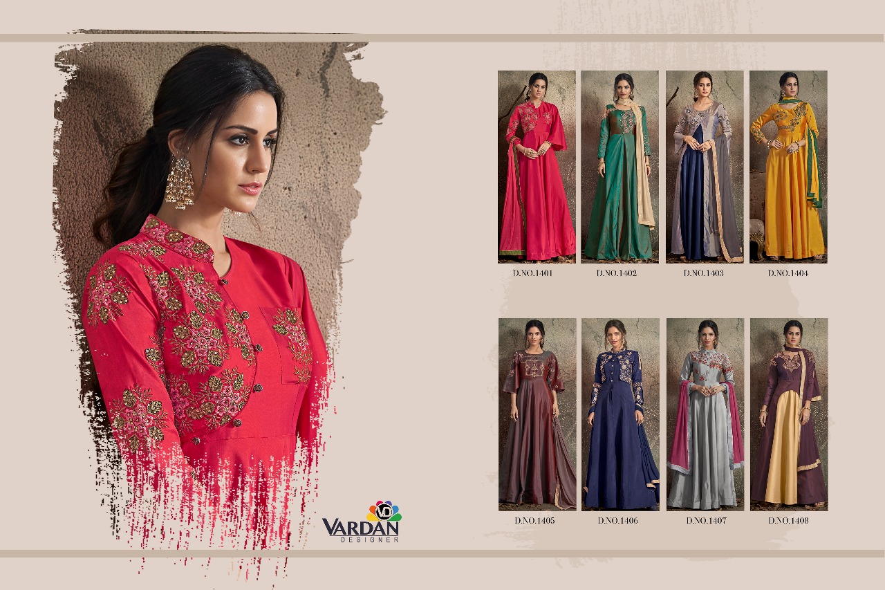 Buy Online Navya Vol 14 By Vardan Designer Party Wear Gowns Wholesale Supplier Gujarat 8 Pcs of Full Catalogue at Wholesale Price. Looking for Navya Vol 14 By Vardan Designer Party Wear Gowns Wholesale Supplier Gujarat Full Catalouge at Best Price? Buy Now Navya Vol 14 By Vardan Designer Party Wear Gowns Wholesale Supplier Gujarat at Wholesale Rate of Rs 10200 with Total 8 Pcs from authroized dealer and supplier of VARDAN DESIGNER Brand. Cost of Each piece is just only Rs 1275 which is very low and affordable price to resale the product in your retail store ,This is Surat based Wholesale Supplier & Dealer of VARDAN DESIGNER Brand. Click on Brand name to Know more about VARDAN DESIGNER Brand's products.Call or Whatsapp on 9898838984 for booking or enquiry