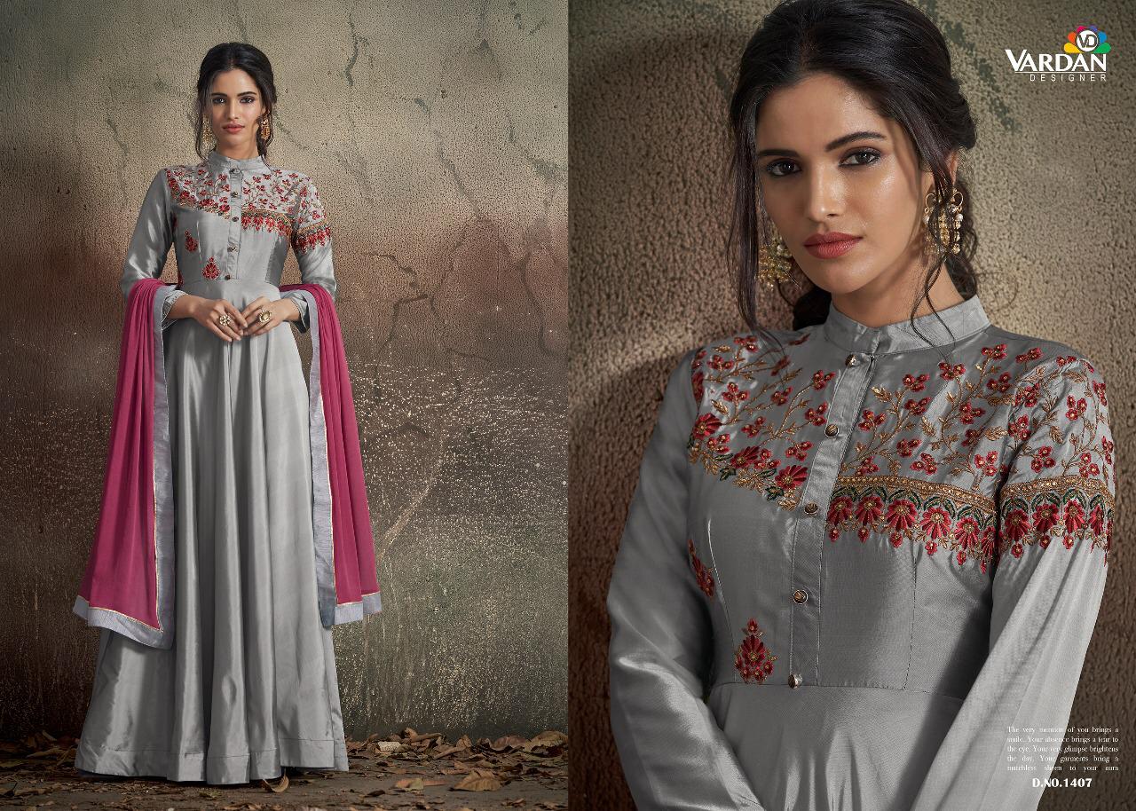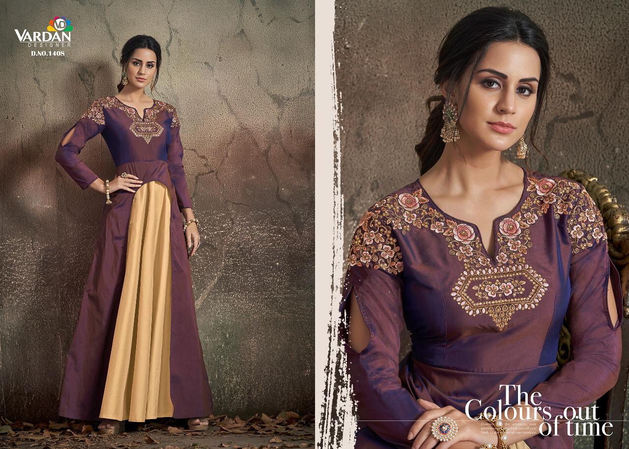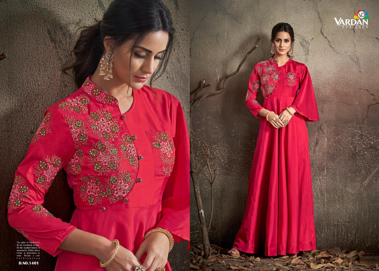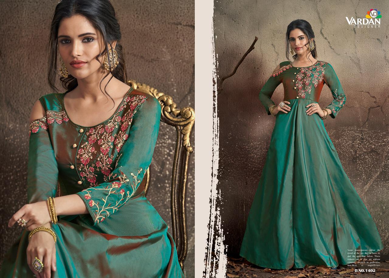 Buy Online Navya Vol 14 By Vardhan Silk Designer Party Wear Gowns Wholesale Supplier Gujarat 8 Pcs of Full Catalogue at Wholesale Price. Looking for Navya Vol 14 By Vardhan Silk Designer Party Wear Gowns Wholesale Supplier Gujarat Full Catalouge at Best Price? Buy Now Navya Vol 14 By Vardhan Silk Designer Party Wear Gowns Wholesale Supplier Gujarat at Wholesale Rate of Rs 10200 with Total 8 Pcs from authroized dealer and supplier of VARDAN DESIGNER Brand. Cost of Each piece is just only Rs 1275 which is very low and affordable price to resale the product in your retail store ,This is Surat based Wholesale Supplier & Dealer of VARDAN DESIGNER Brand. Click on Brand name to Know more about VARDAN DESIGNER Brand's products.Call or Whatsapp on 9898838984 for booking or enquiry