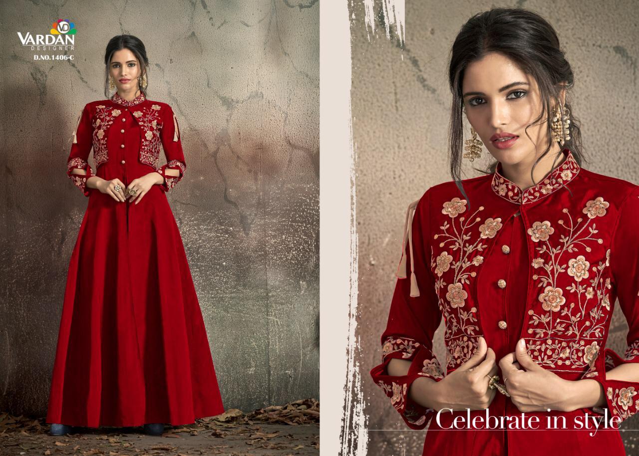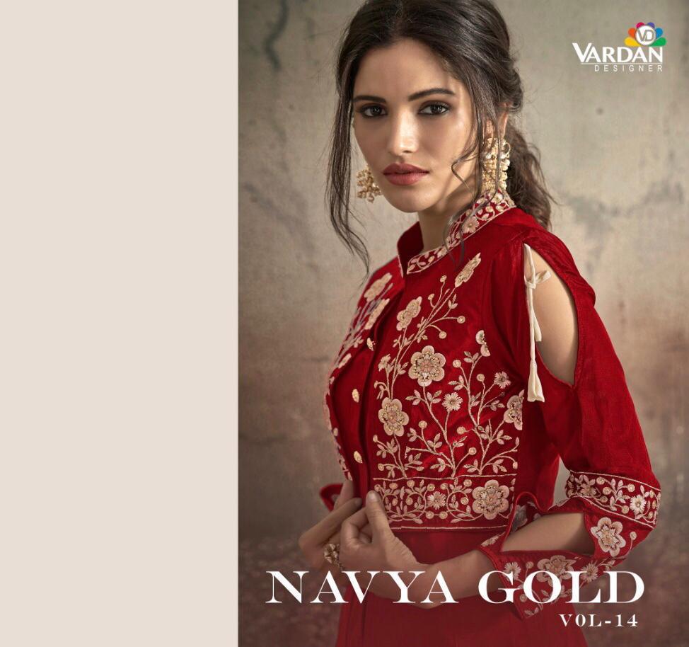 Buy Online Navya Vol 14 Gold By Vardan Designer Silk Designer Party Wear Gowns Wholesale Supplier Gujarat 4 Pcs of Full Catalogue at Wholesale Price. Looking for Navya Vol 14 Gold By Vardan Designer Silk Designer Party Wear Gowns Wholesale Supplier Gujarat Full Catalouge at Best Price? Buy Now Navya Vol 14 Gold By Vardan Designer Silk Designer Party Wear Gowns Wholesale Supplier Gujarat at Wholesale Rate of Rs 4300 with Total 4 Pcs from authroized dealer and supplier of VARDAN DESIGNER Brand. Cost of Each piece is just only Rs 1075 which is very low and affordable price to resale the product in your retail store ,This is Surat based Wholesale Supplier & Dealer of VARDAN DESIGNER Brand. Click on Brand name to Know more about VARDAN DESIGNER Brand's products.Call or Whatsapp on 9898838984 for booking or enquiry