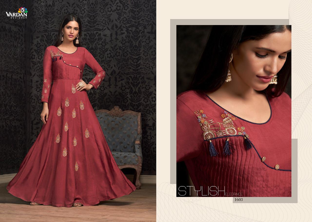 Buy Online Navya Vol 16 By Vardan Designer Gowns Wholesale Supplier And Dealer Surat 4 Pcs of Full Catalogue at Wholesale Price. Looking for Navya Vol 16 By Vardan Designer Gowns Wholesale Supplier And Dealer Surat Full Catalouge at Best Price? Buy Now Navya Vol 16 By Vardan Designer Gowns Wholesale Supplier And Dealer Surat at Wholesale Rate of Rs 4200 with Total 4 Pcs from authroized dealer and supplier of VARDAN DESIGNER Brand. Cost of Each piece is just only Rs 1050 which is very low and affordable price to resale the product in your retail store ,This is Surat based Wholesale Supplier & Dealer of VARDAN DESIGNER Brand. Click on Brand name to Know more about VARDAN DESIGNER Brand's products.Call or Whatsapp on 9898838984 for booking or enquiry