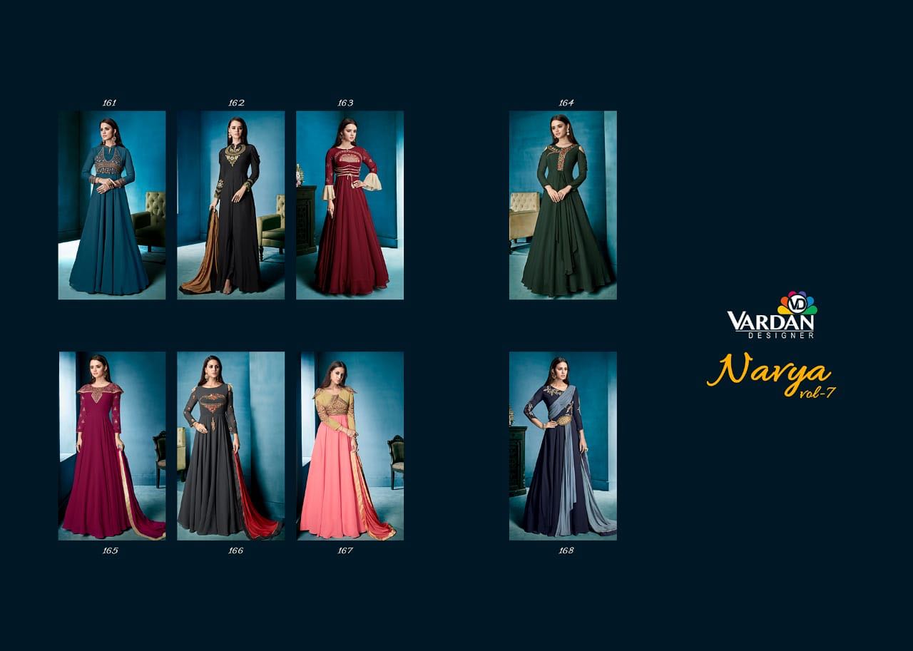 Buy Online Navya Vol 7 By Vardan Designer Party Wear Indo Western Gown Wholesale Supplier And Dealer Nitya Nx Surat 8 Pcs of Full Catalogue at Wholesale Price. Looking for Navya Vol 7 By Vardan Designer Party Wear Indo Western Gown Wholesale Supplier And Dealer Nitya Nx Surat Full Catalouge at Best Price? Buy Now Navya Vol 7 By Vardan Designer Party Wear Indo Western Gown Wholesale Supplier And Dealer Nitya Nx Surat at Wholesale Rate of Rs 9560 with Total 8 Pcs from authroized dealer and supplier of VARDAN DESIGNER Brand. Cost of Each piece is just only Rs 1195 which is very low and affordable price to resale the product in your retail store ,This is Surat based Wholesale Supplier & Dealer of VARDAN DESIGNER Brand. Click on Brand name to Know more about VARDAN DESIGNER Brand's products.Call or Whatsapp on 9898838984 for booking or enquiry