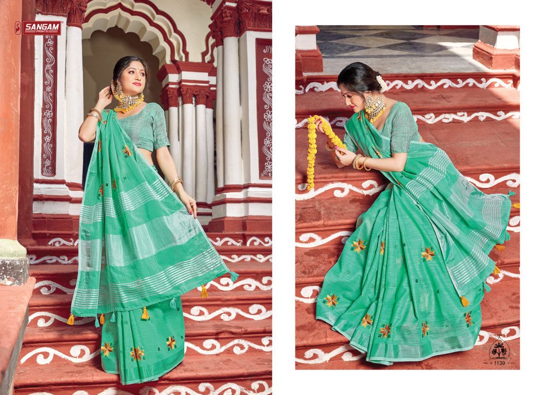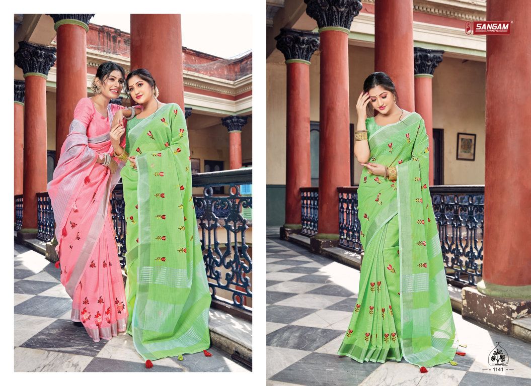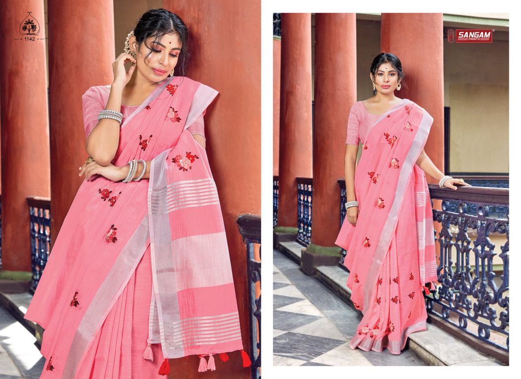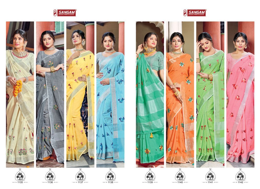 ?LAUNCHING? BRAND - SANGAM ?NEW CATALOG? CATALOG :- NAYRA FABRIC: Linen RATE: 1025 + GST SAREE SIZE: 5.50 Mtr BLOUSE FABRIC: 0.80 Mtr TOTAL PCS: 8 AVAILABLE :- SINGLE PCS AND FULL SET BOTH ARE TODAY * set & loose & Singel * WITH BLOUSE PIECE ATTACHED ?BOOK YOUR ORDERS NOW? 100+single |