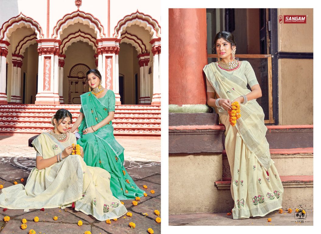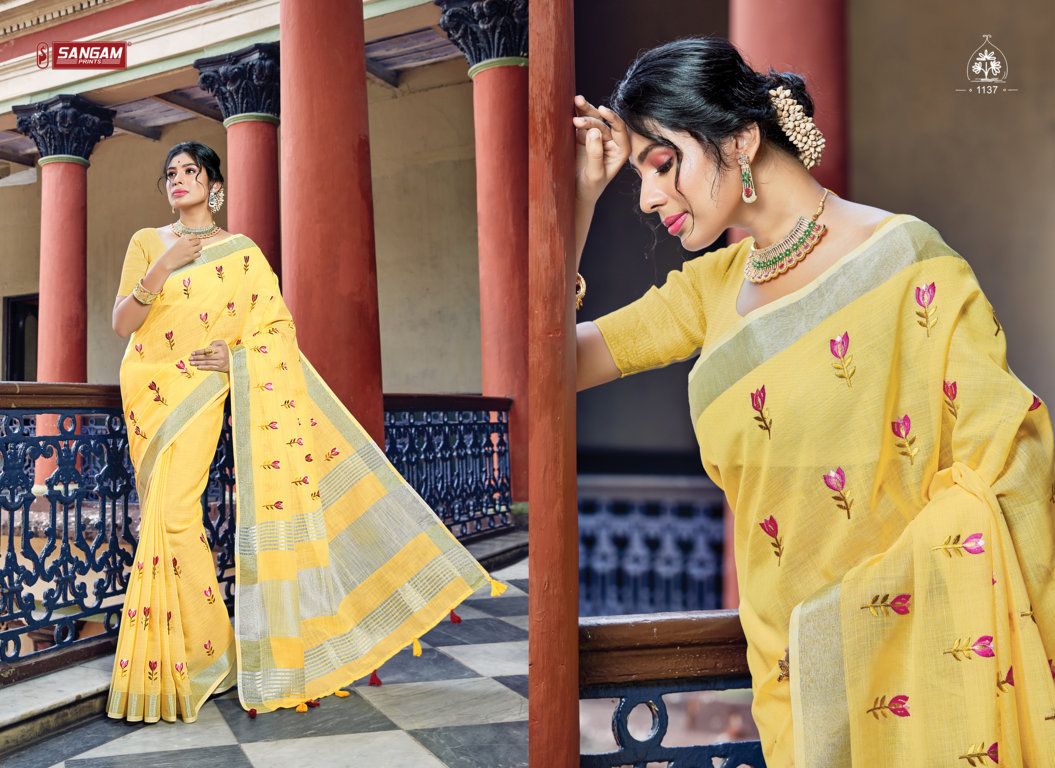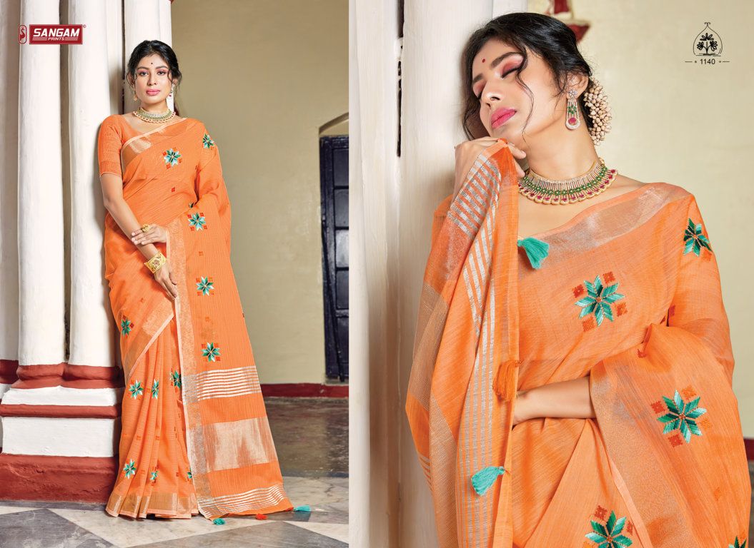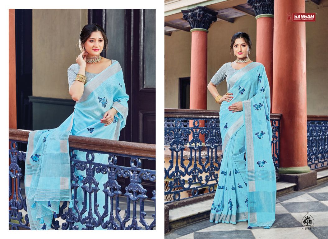 ?LAUNCHING? BRAND - SANGAM ?NEW CATALOG? CATALOG :- NAYRA FABRIC: Linen RATE: 1025 + GST SAREE SIZE: 5.50 Mtr BLOUSE FABRIC: 0.80 Mtr TOTAL PCS: 8 AVAILABLE :- SINGLE PCS AND FULL SET BOTH ARE TODAY * set & loose & Singel * WITH BLOUSE PIECE ATTACHED ?BOOK YOUR ORDERS NOW? 100+single |