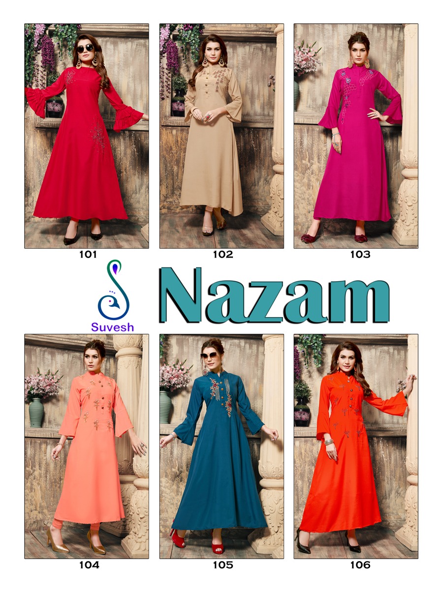 Buy Online Nazam By Suvesh 101 Series Fancy Muslin With Handwork Kurti Catlog Wholesale Dealer Surat 6 Pcs of Full Catalogue at Wholesale Price. Looking for Nazam By Suvesh 101 Series Fancy Muslin With Handwork Kurti Catlog Wholesale Dealer Surat Full Catalouge at Best Price? Buy Now Nazam By Suvesh 101 Series Fancy Muslin With Handwork Kurti Catlog Wholesale Dealer Surat at Wholesale Rate of Rs 4680 with Total 6 Pcs from authroized dealer and supplier of Suvesh Brand. Cost of Each piece is just only Rs 780 which is very low and affordable price to resale the product in your retail store ,This is Surat based Wholesale Supplier & Dealer of Suvesh Brand. Click on Brand name to Know more about Suvesh Brand's products.Call or Whatsapp on 9898838984 for booking or enquiry