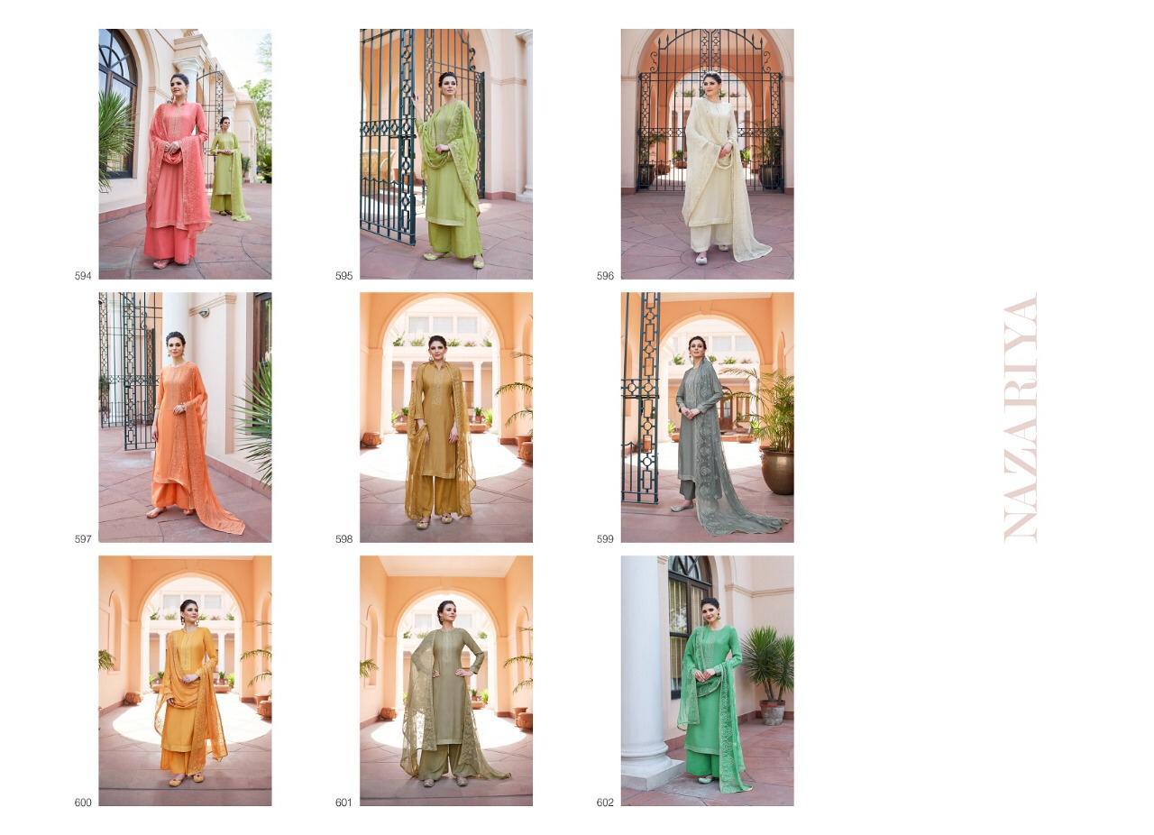 Buy Online Nazariya By Bela Series 594 To 602 Designer Party Wear Suits Wholesale Supplier Gujarat 9 Pcs of Full Catalogue at Wholesale Price. Looking for Nazariya By Bela Series 594 To 602 Designer Party Wear Suits Wholesale Supplier Gujarat Full Catalouge at Best Price? Buy Now Nazariya By Bela Series 594 To 602 Designer Party Wear Suits Wholesale Supplier Gujarat at Wholesale Rate of Rs 13365 with Total 9 Pcs from authroized dealer and supplier of BELA Brand. Cost of Each piece is just only Rs 1485 which is very low and affordable price to resale the product in your retail store ,This is Surat based Wholesale Supplier & Dealer of BELA Brand. Click on Brand name to Know more about BELA Brand's products.Call or Whatsapp on 9898838984 for booking or enquiry